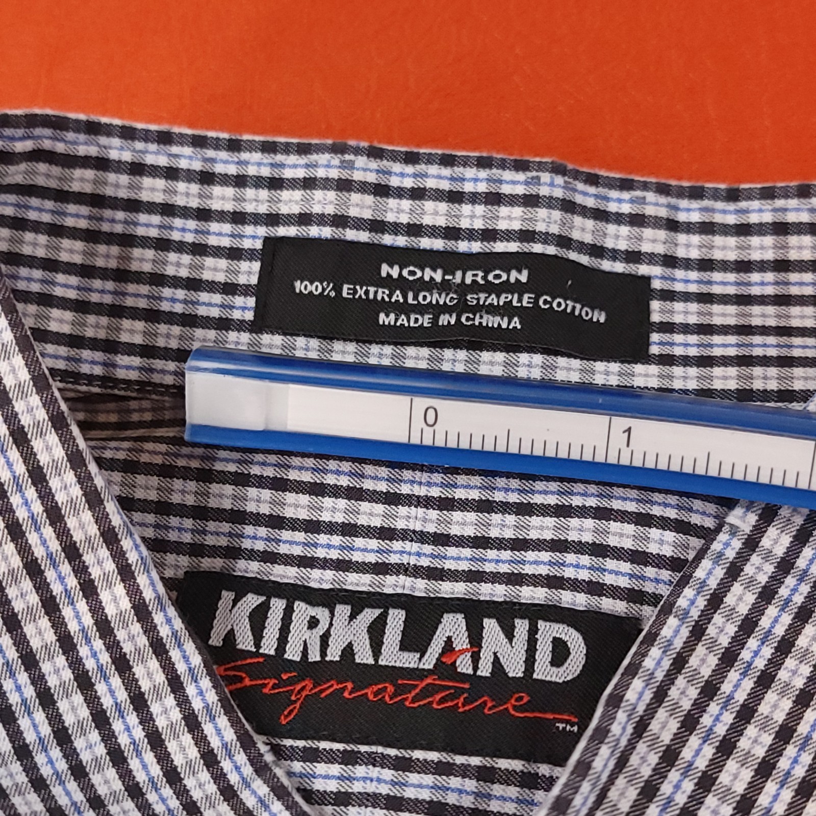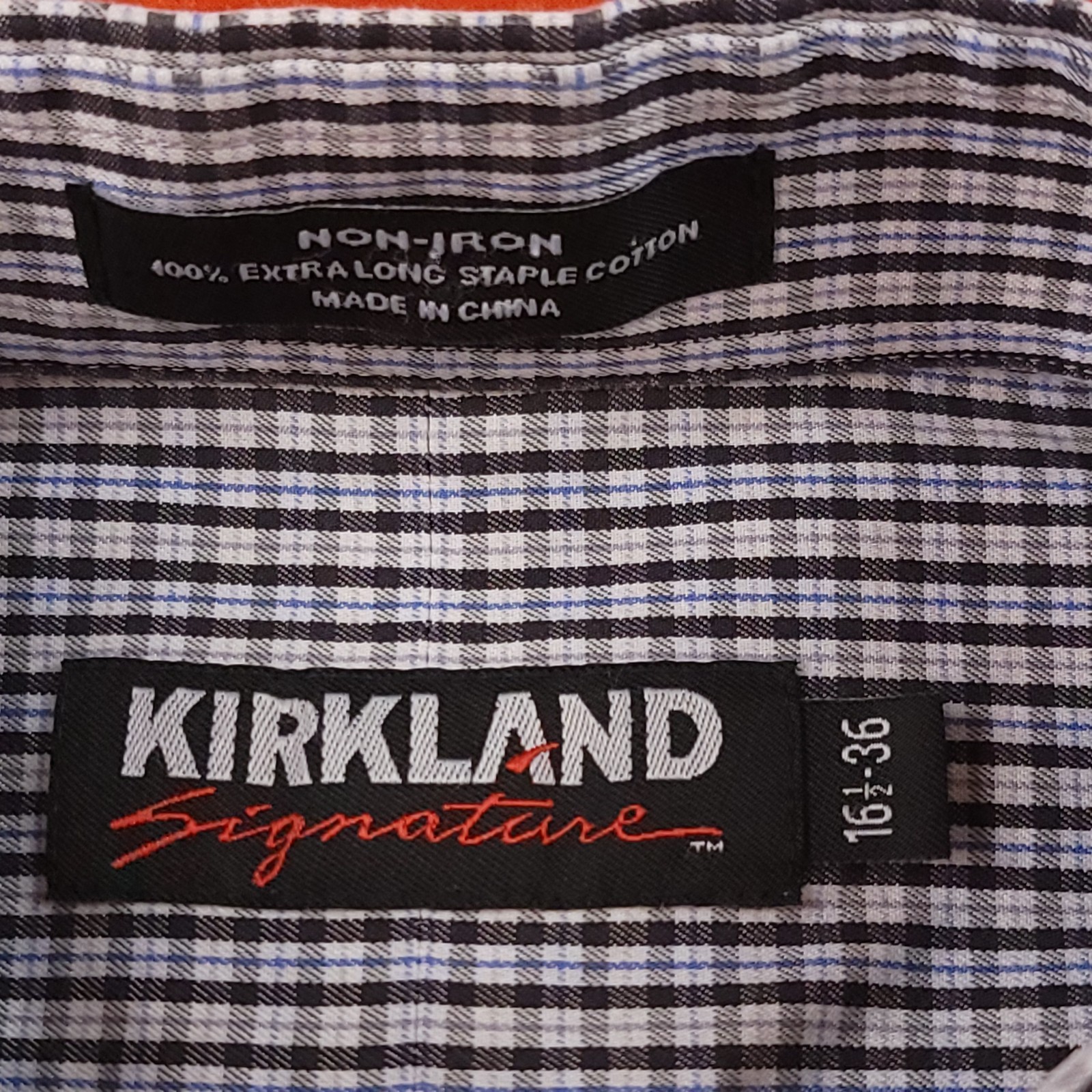 Kirkland Men's Non-Iron Button-Down Long Sleeve Shirt Black Plaid Size 16.5-36