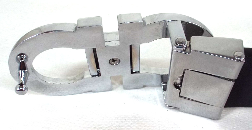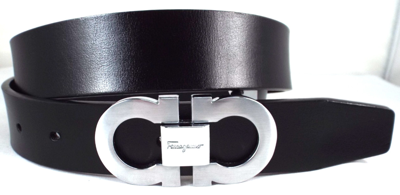 как выглядит EUC Salvatore Ferragamo Black 3mm Leather 1.25" Belt Gancini Buckle Sz 34-36 фото