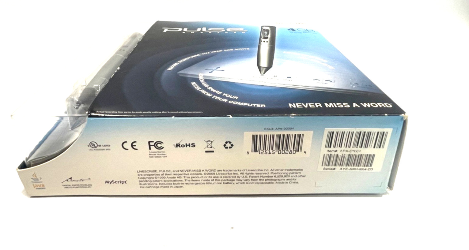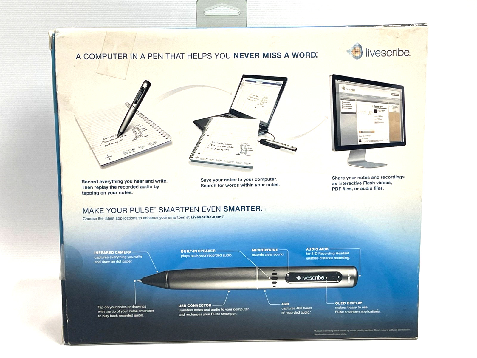 Livescribe Pulse Smartpen 4GB 400 Hrs Audio Recording Mac Windows Computer Pen