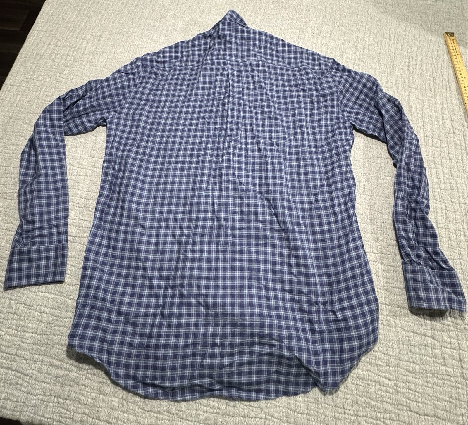 как выглядит Peter Millar Mens Large Button Up Plaid Shirt 100 Cotton Blue Check Long Sleeve фото