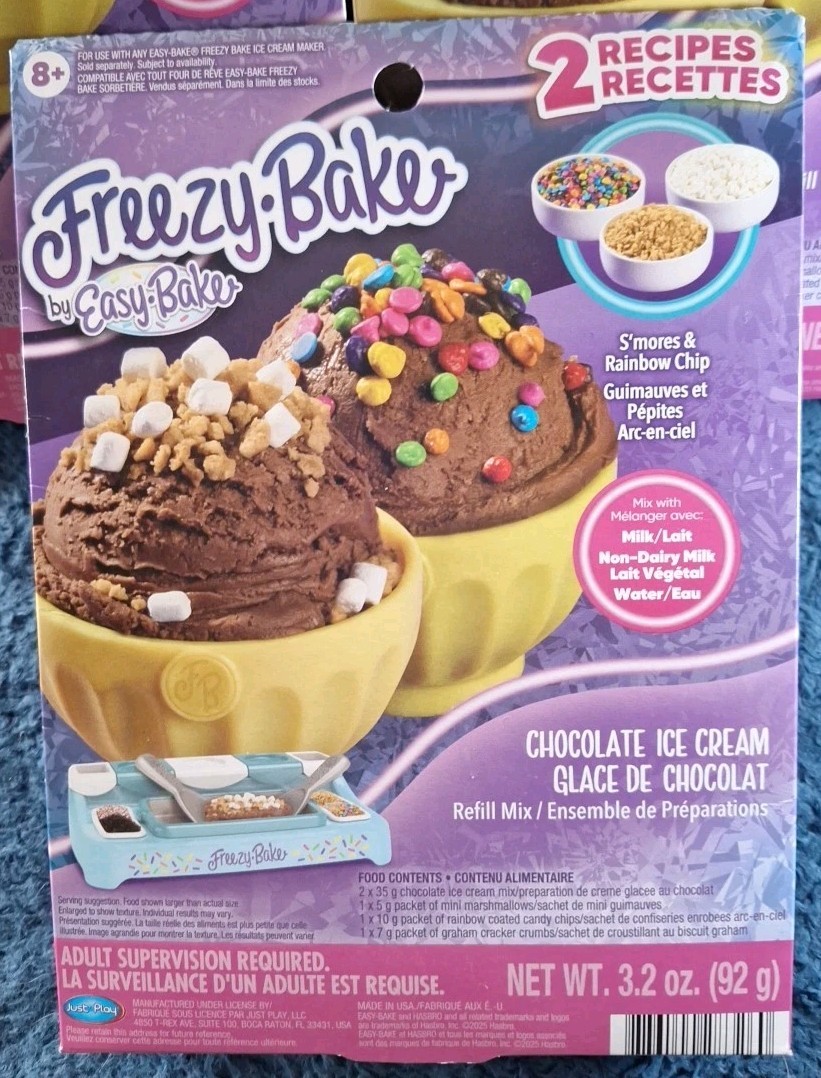 как выглядит FREEZY BAKE EASY BAKE Ice Cream Lot 3pks CHOCOLATE SMORES / RAINBOW CHIP REFILL фото