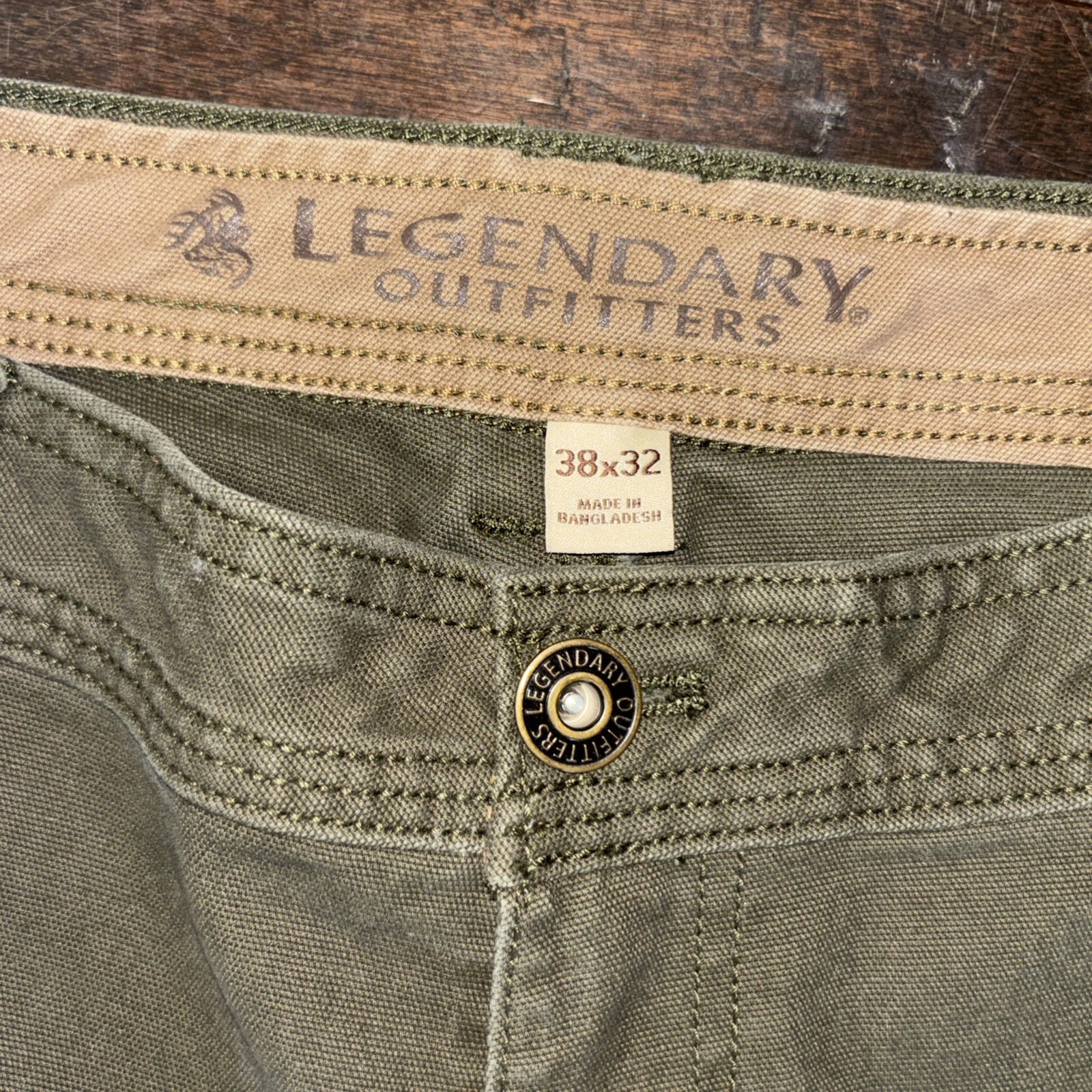 Legendary Outfitters Men Green Canvas Pants Pockets Side Zipper Pocket 38x32