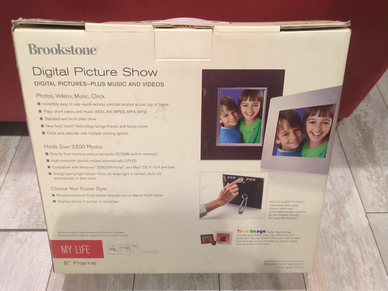как выглядит BROOKSTONE Digital Picture Show My Life 8 FRAME NEW Holds 3500 Photos, Videos фото