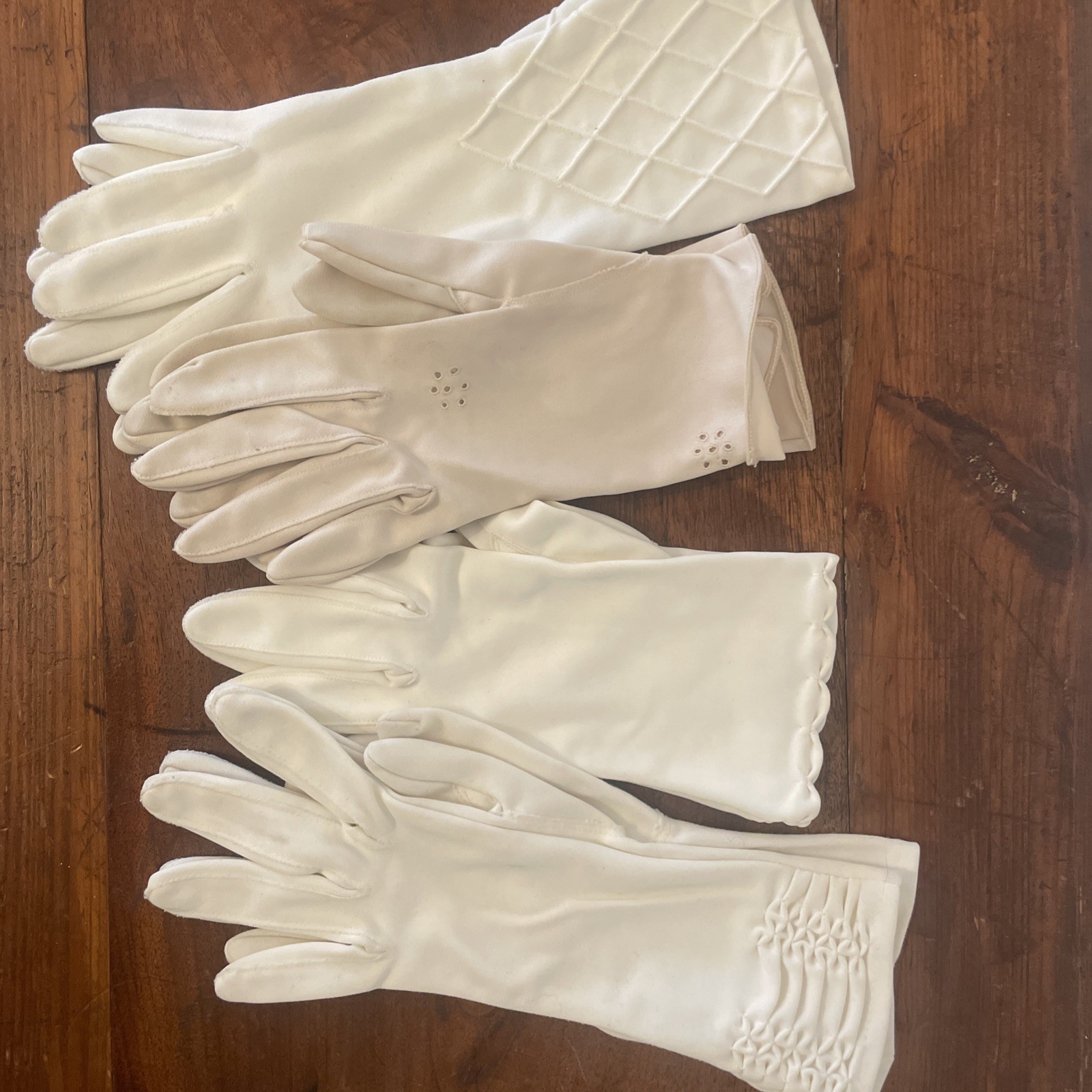 как выглядит Vintage Womens Gloves 4 Pairs Hand-Stitched White/Cream/Beige фото