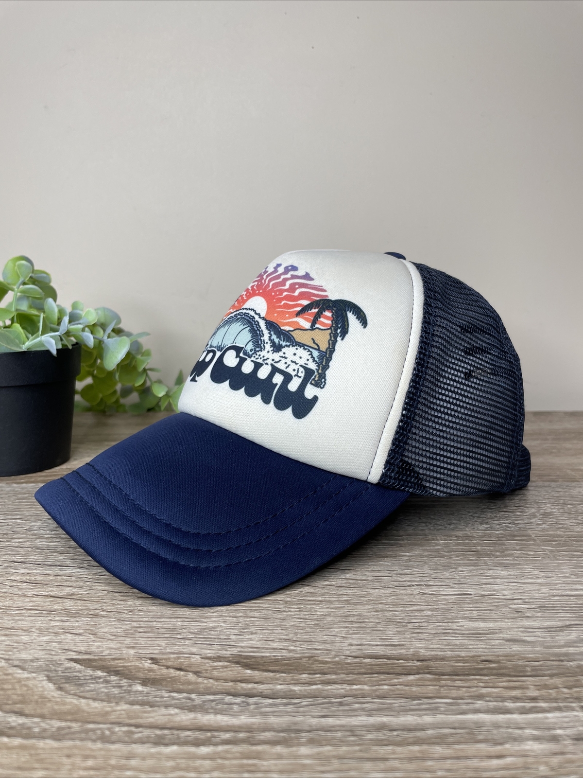 Rip Curl Breaking Waves Trucker Hat Mesh Snapback Cap Blue White Unisex