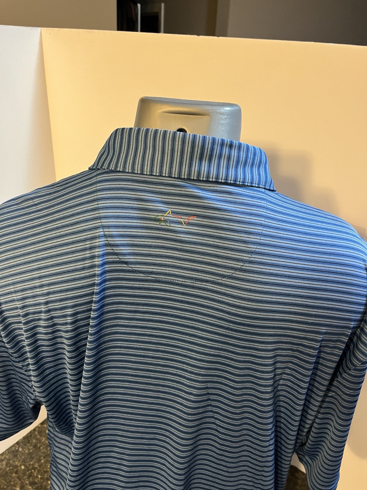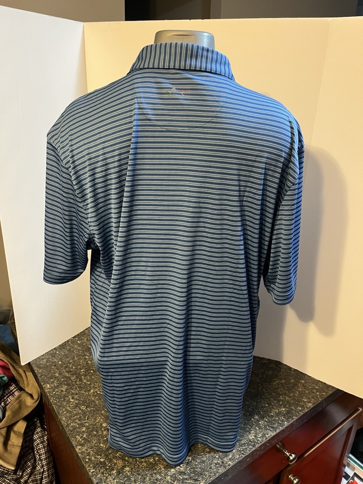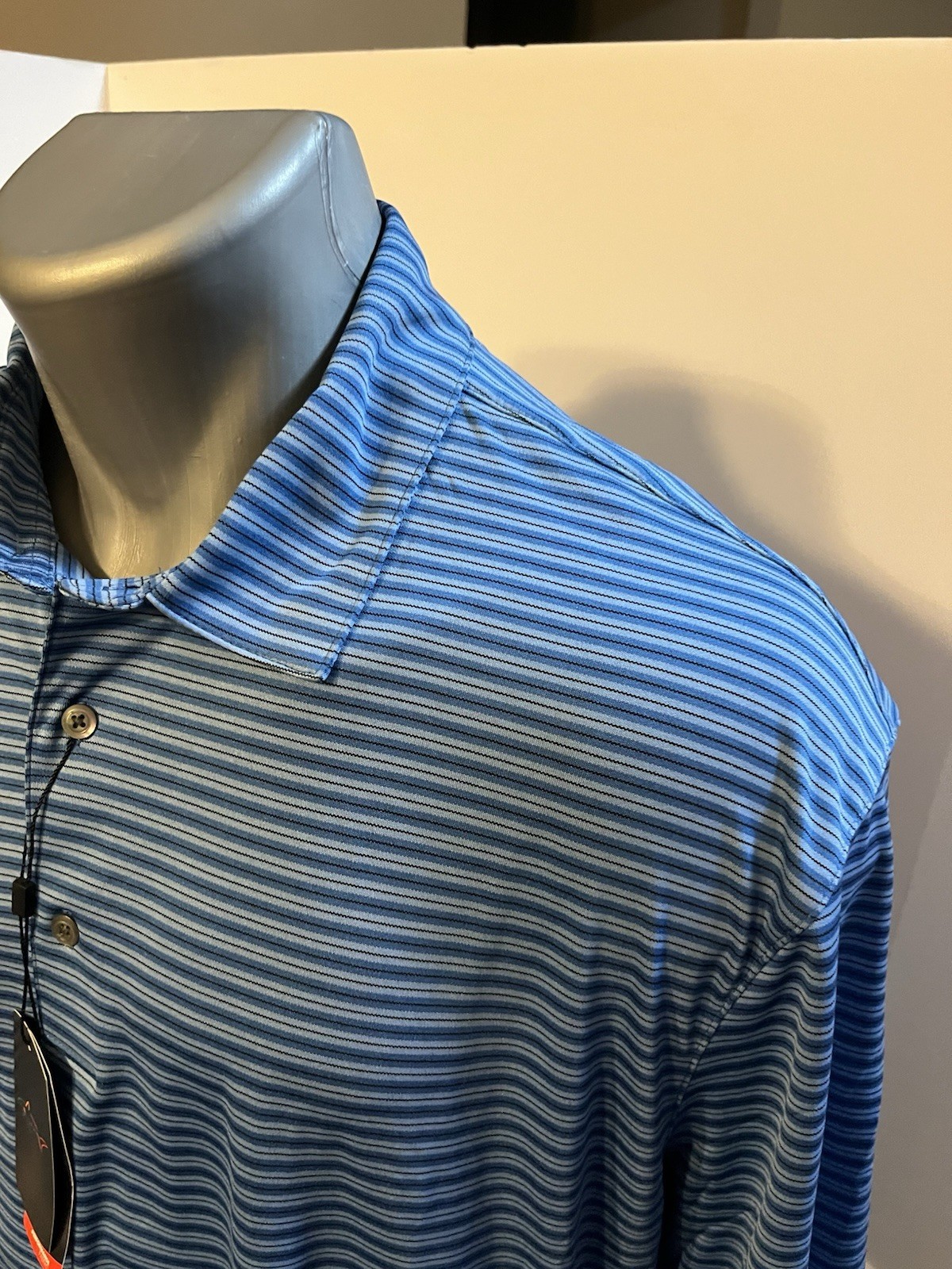 как выглядит Greg Norman Play Dry Men s Golf Polo Shirt Blue Striped XL Poly - NWT фото