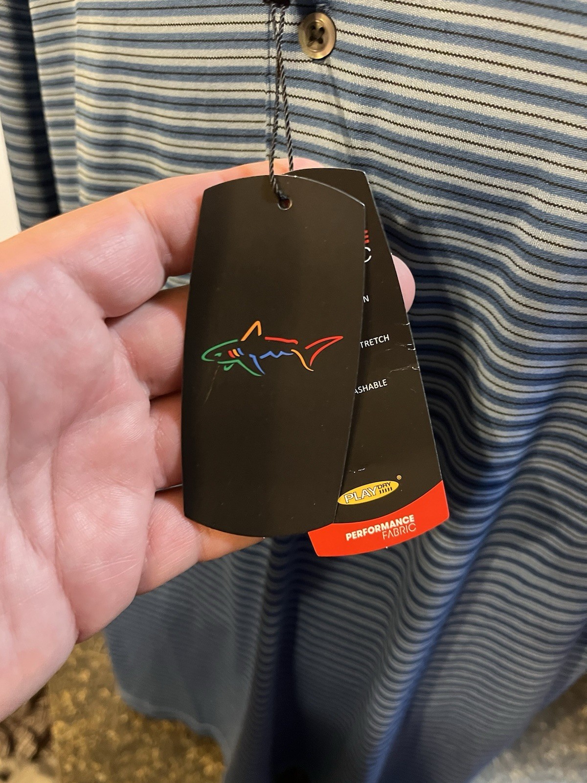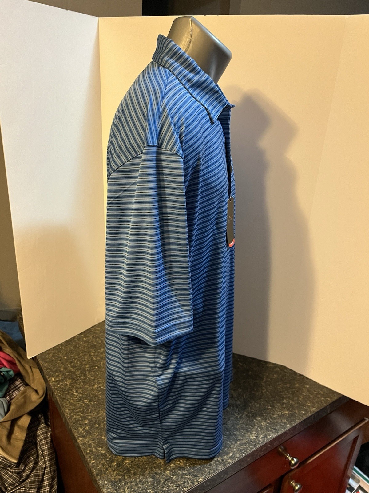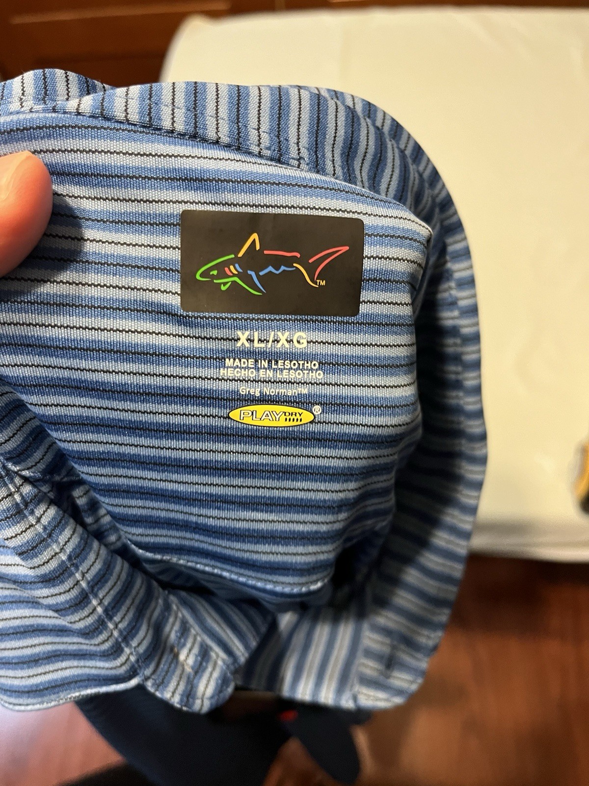 как выглядит Greg Norman Play Dry Men s Golf Polo Shirt Blue Striped XL Poly - NWT фото