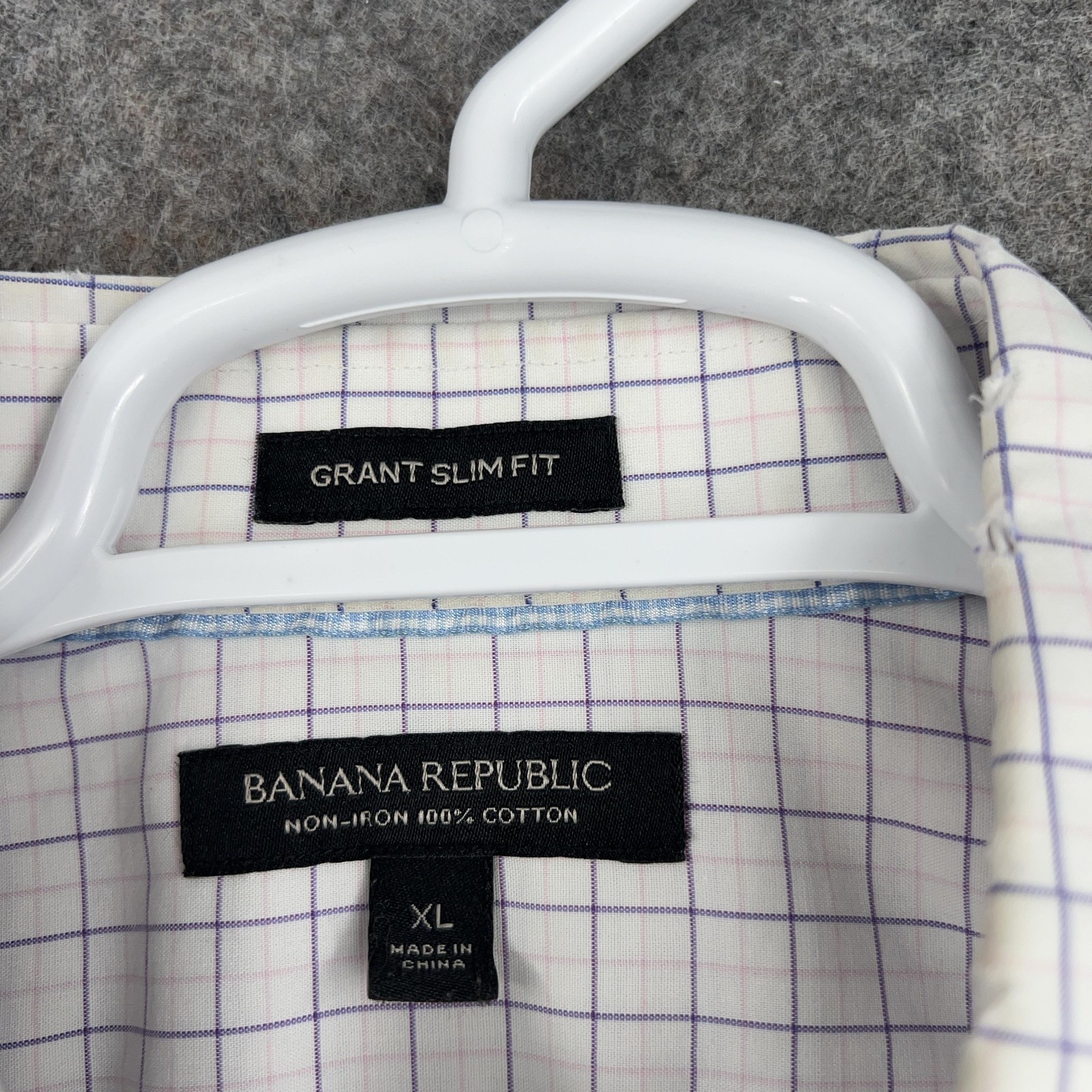 Banana Republic Shirt Mens XL 17-17.5 34/35 White Check Non Iron Slim Fit