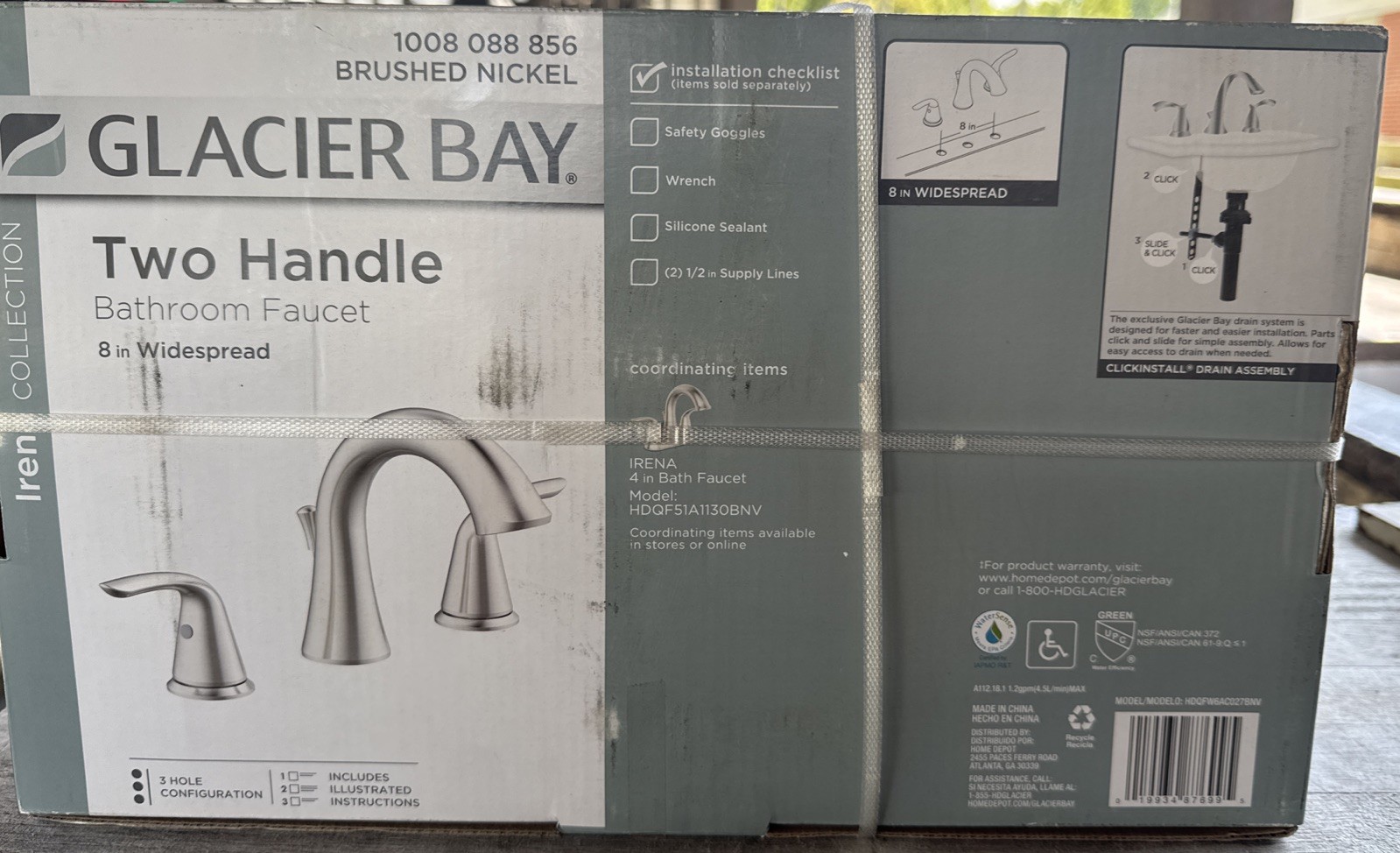 Glacier Bay Irena 8in. Widespread 2-Handle Bathroom Faucet in Brushed Nickel NEW
