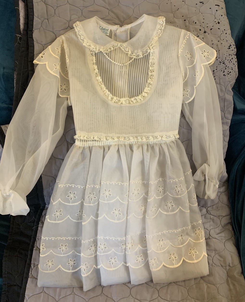 L'Enfant White Sheer Communion Dress Slip Size 7 Vintage 1970 s READ