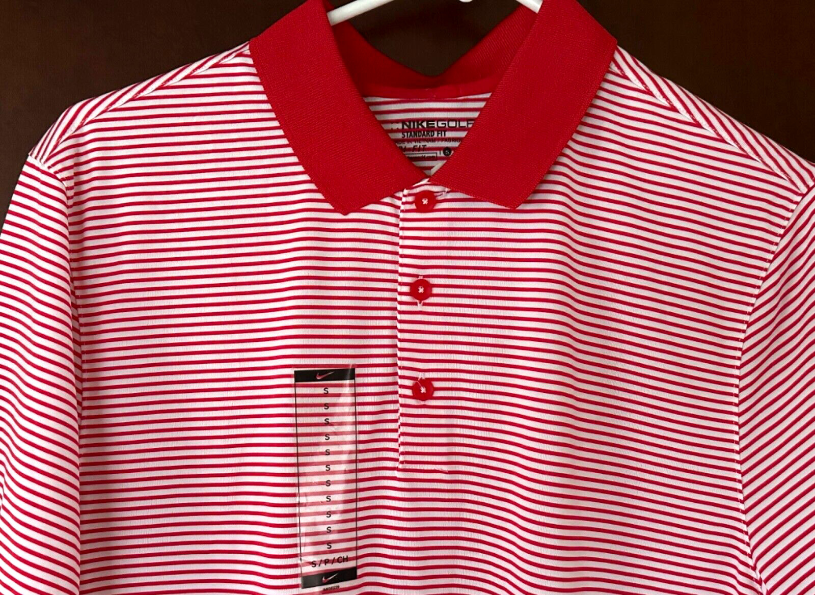 NEW Nike Golf Victory Stripe DRI FIT Polo Shirt Small Mens Red White S/S Button