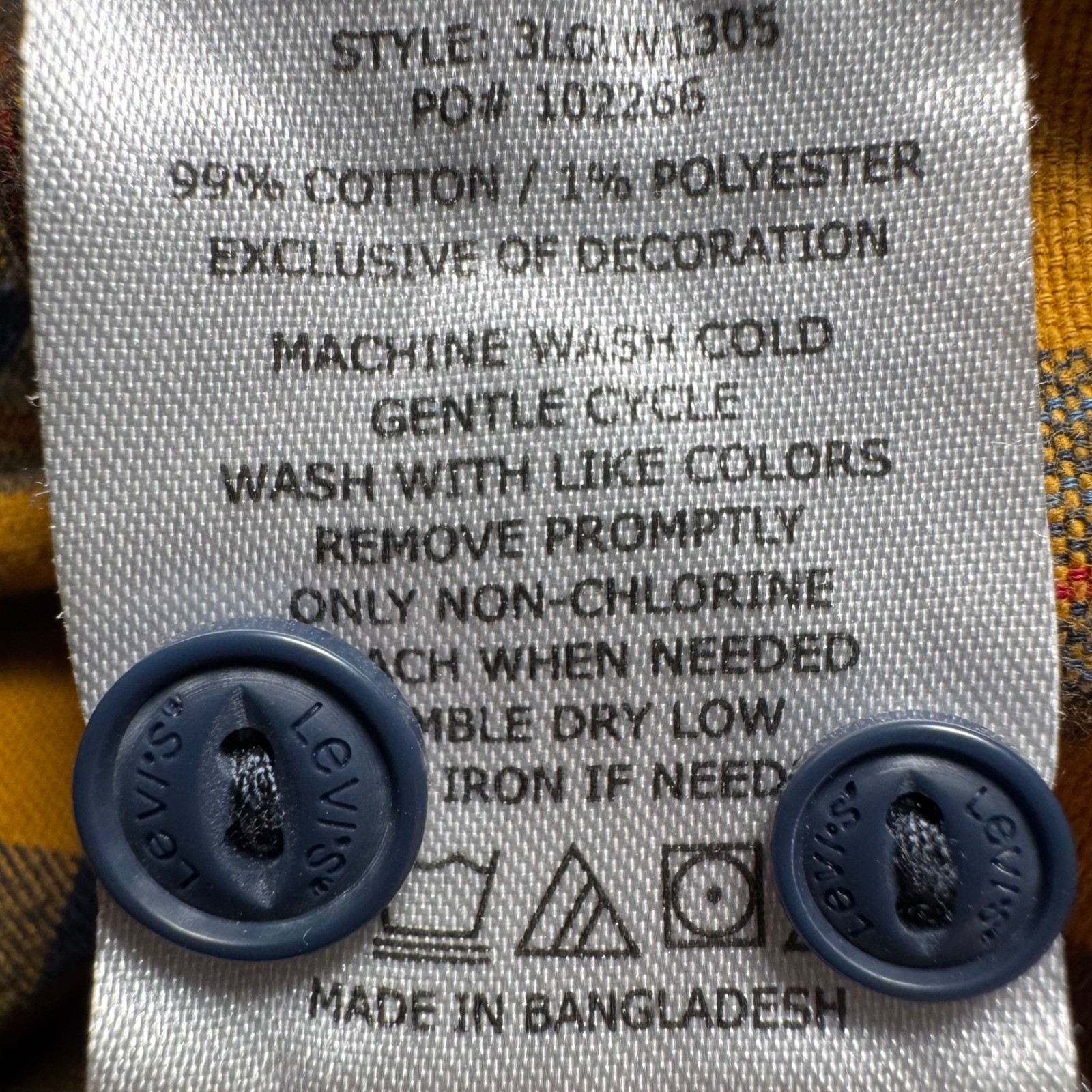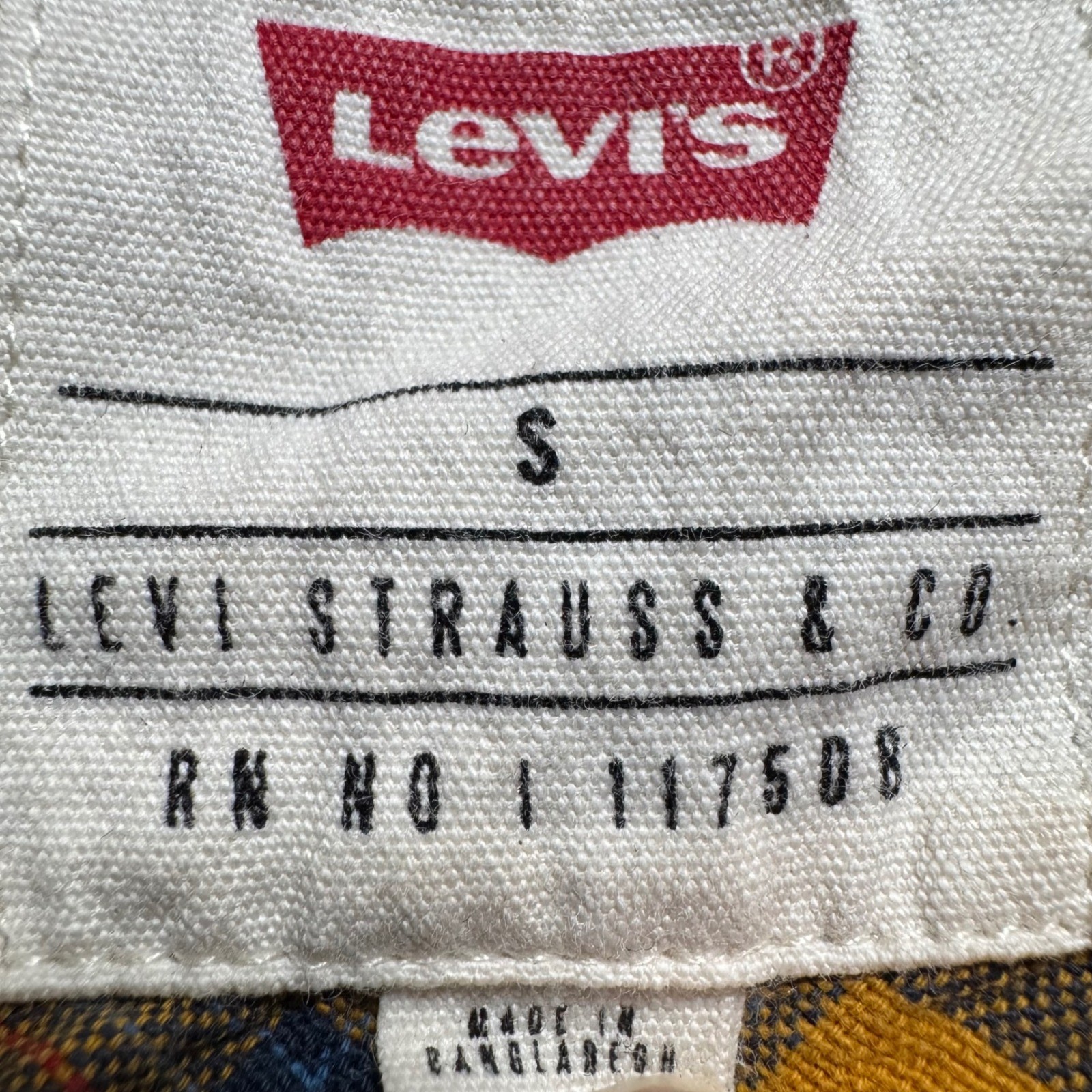 как выглядит Levis Mens Small Yellow Navy Blue Plaid Button Down Flannel Shirt 3LGW1305 фото