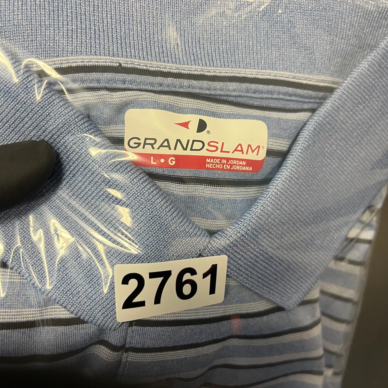 Grand Slam Golf Polo Shirts Men's Blue Striped Short Sleeve Classic - Large