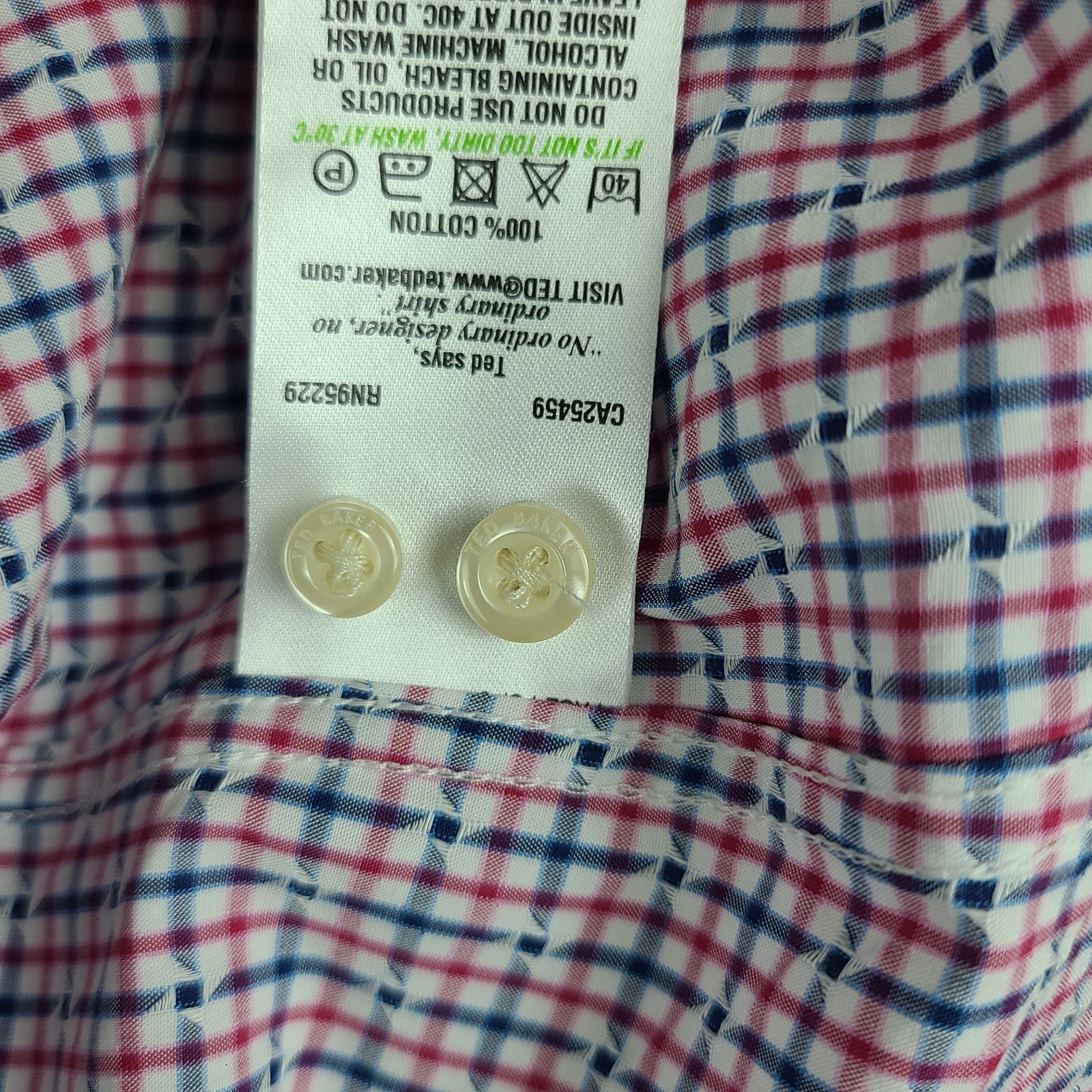как выглядит Ted Baker Endurance Dress Shirt Mens 16 34/35 Blue Red Check Plaid Button Up фото