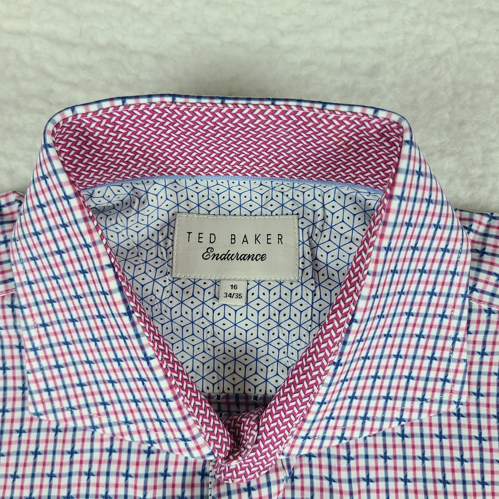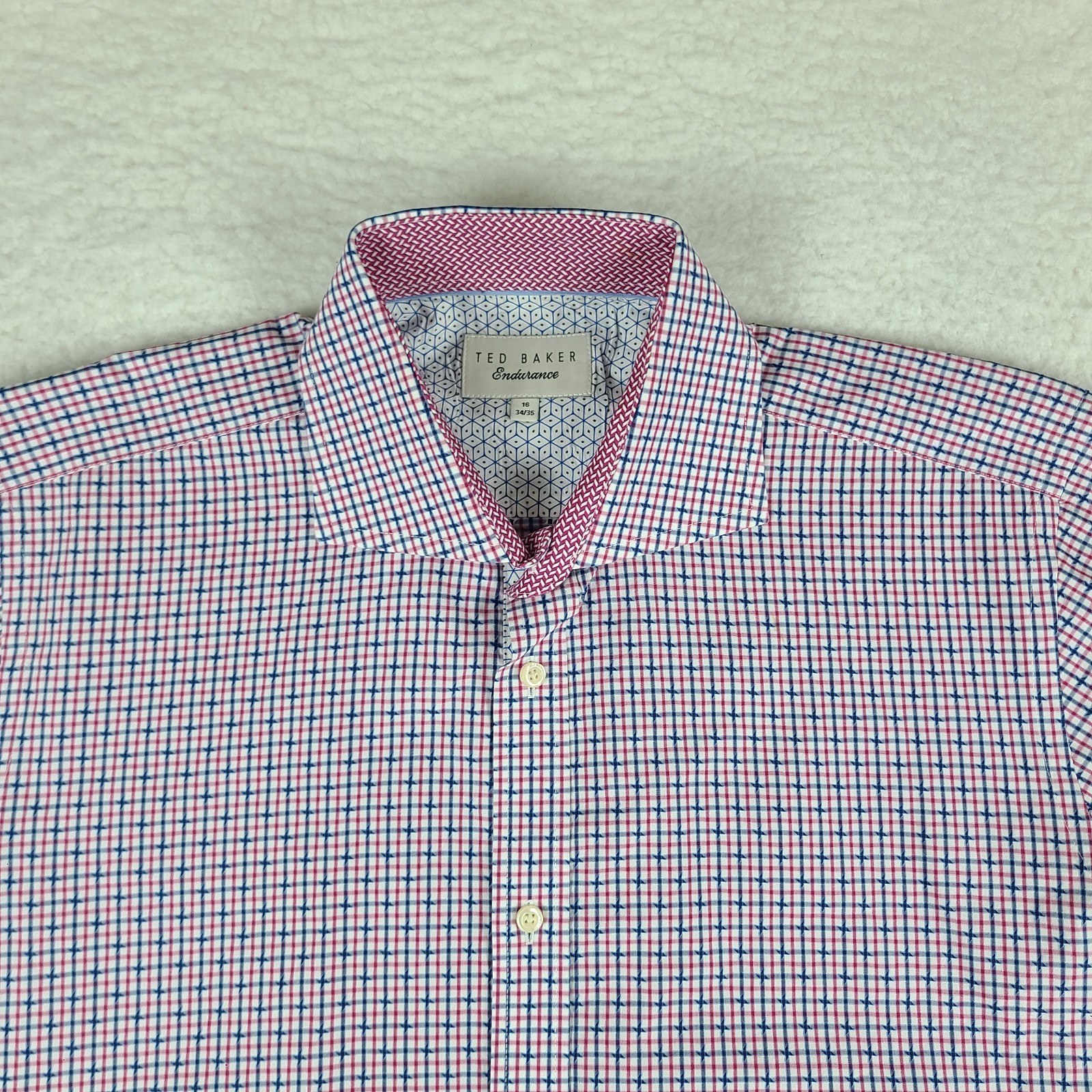 Ted Baker Endurance Dress Shirt Mens 16 34/35 Blue Red Check Plaid Button Up