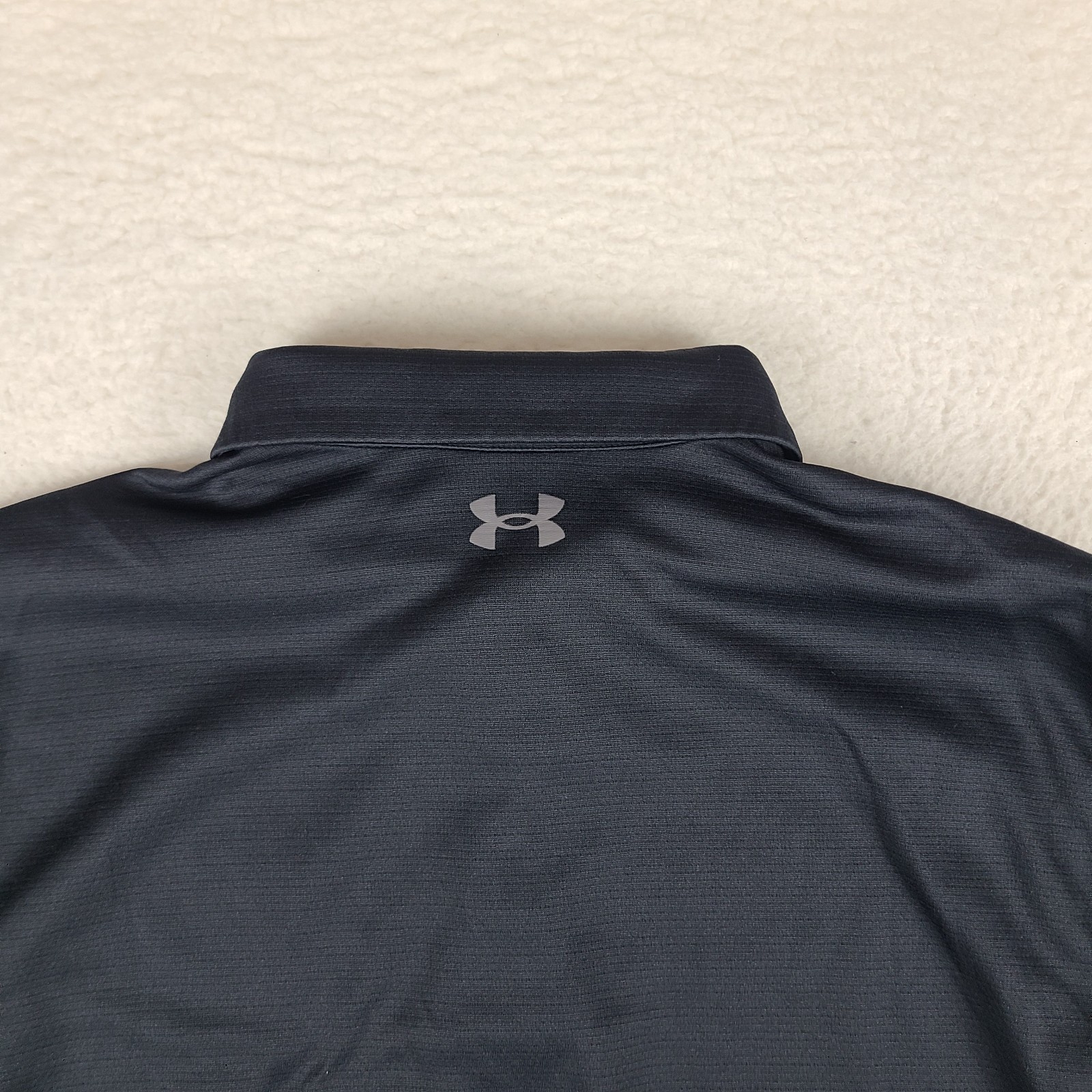 как выглядит Under Armour Polo Shirt Mens XL Black Striped Loose Performance Short Sleeve фото