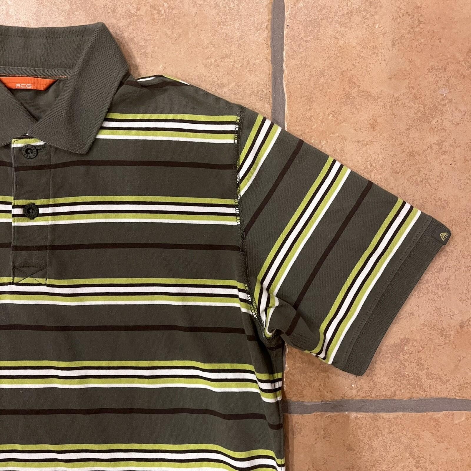 как выглядит Nike ACG Fit Dry Polo Shirt Mens Small Green Striped Short Sleeve All Condition фото