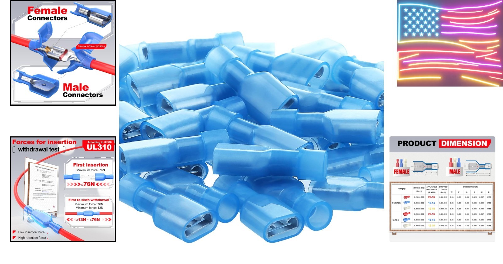 Listed Blue Female Spade Connector 16-14 AWG, 100 Pcs Nylon Electrical Crimps...