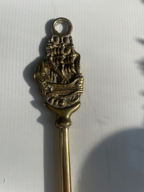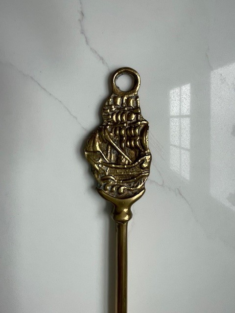как выглядит Vintage Solid Brass Long Handle Shoehorn Sailing Ship Galleon Handle 15" Decor фото