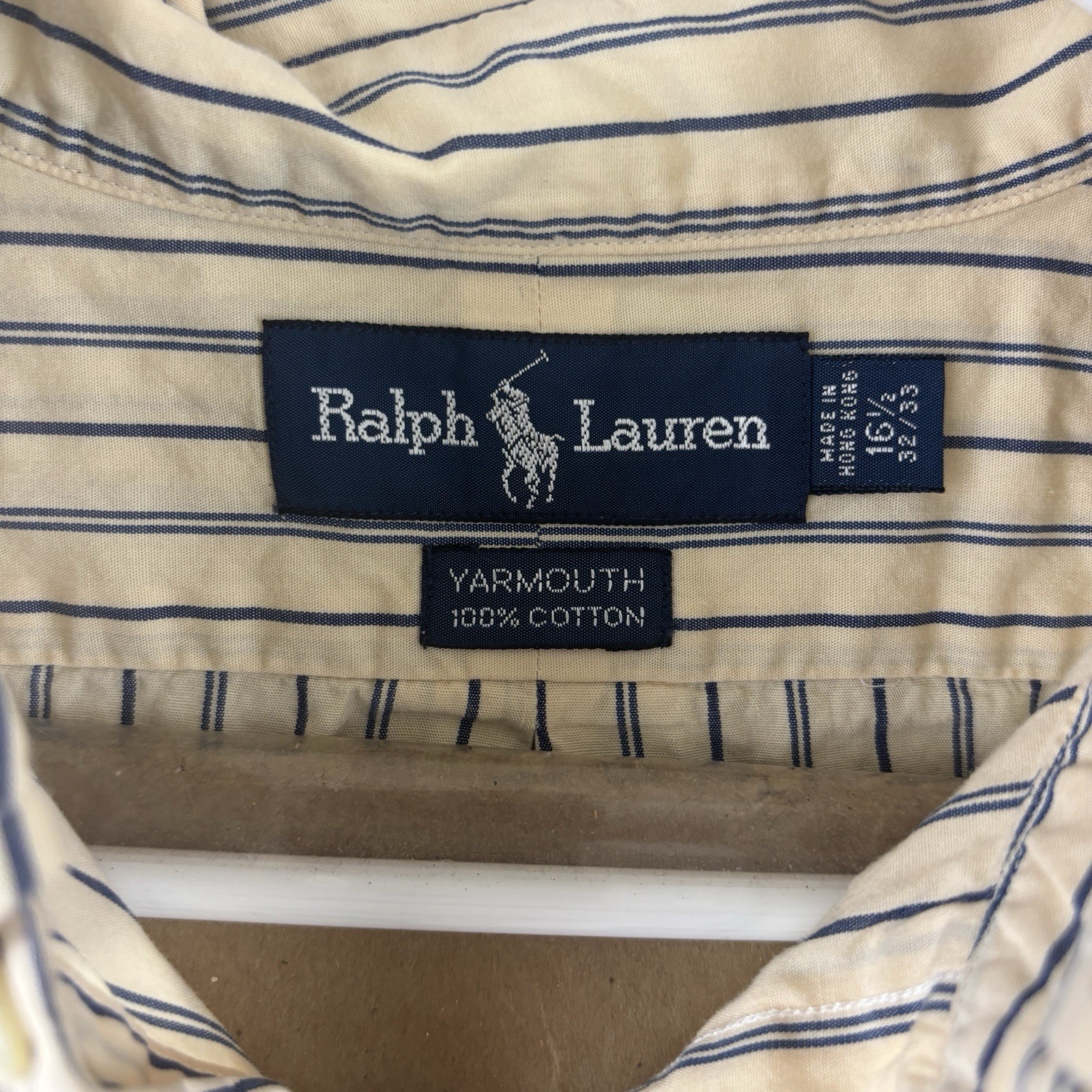 Ralph Lauren Yarmouth Yellow Stripe Longsleeve Button Shirt Men's 16 1/2 x32/33
