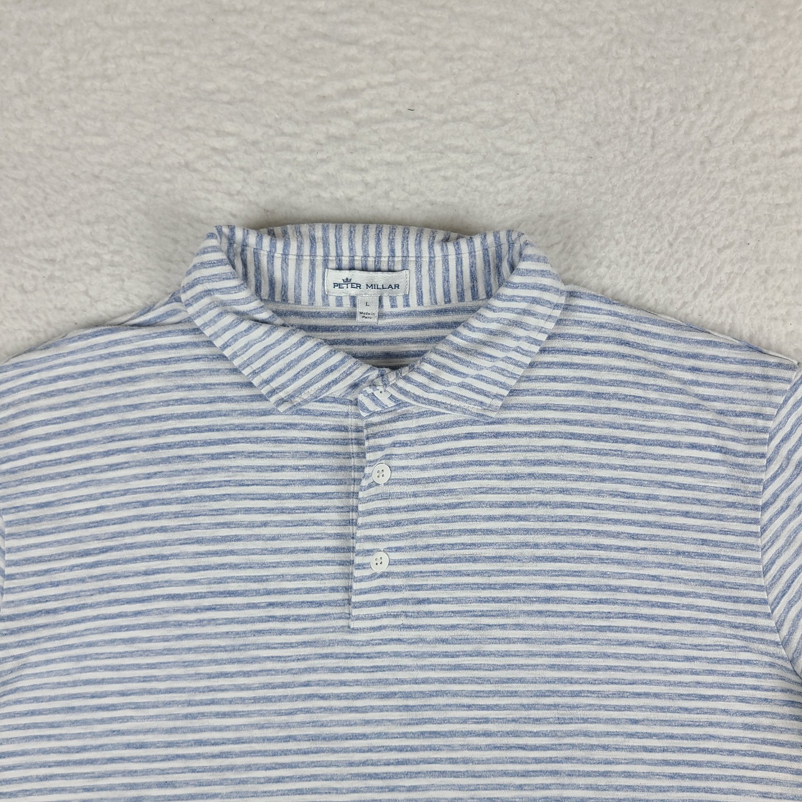 Peter Millar Polo Shirt Mens Large Blue White Striped Performance Short Sleeve