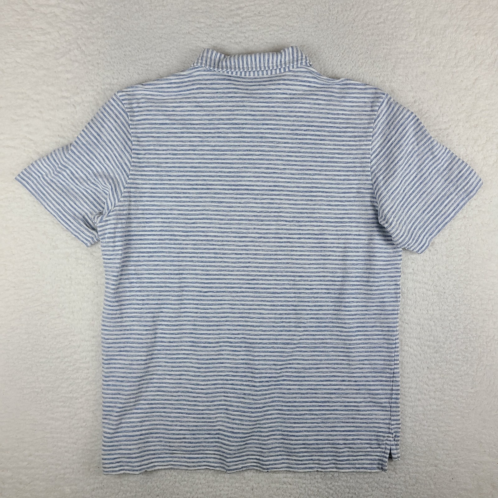 как выглядит Peter Millar Polo Shirt Mens Large Blue White Striped Performance Short Sleeve фото