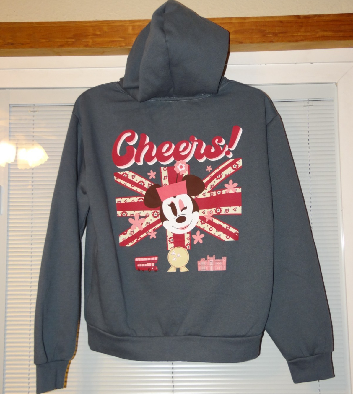 Disney Minnie Mouse hoodie 1/4 zip sweatshirt sz M UK Pavillion EPCOT gray pink