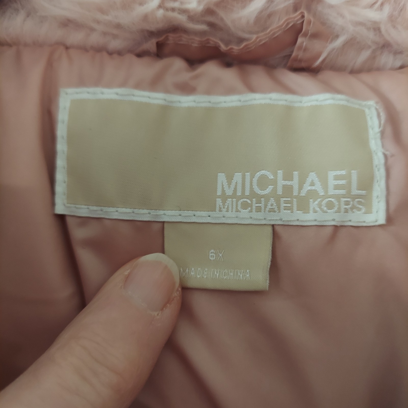 как выглядит Michael Kors Kids Puffer Coat Faux Fur Trim Hooded Pink Winter Jacket 6X фото
