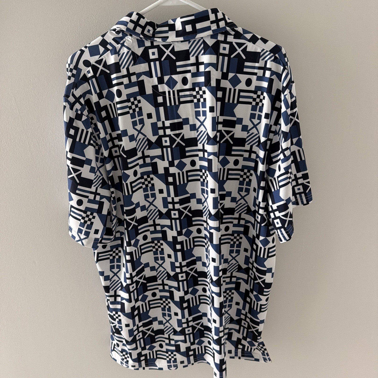 RLX Ralph Lauren Mens Large SS Polo Golf Shirt Geometric Navy Multi NWT 100.00