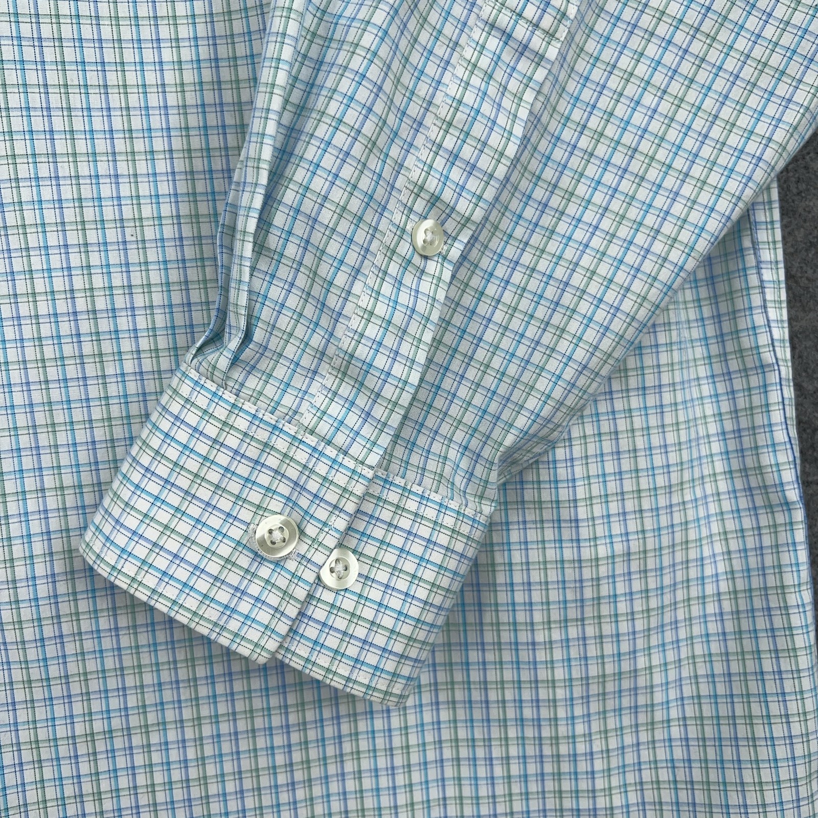 как выглядит Michael Michael Kors Dress Shirt Mens 17.5 34/35 Blue Check Regular Non Iron фото