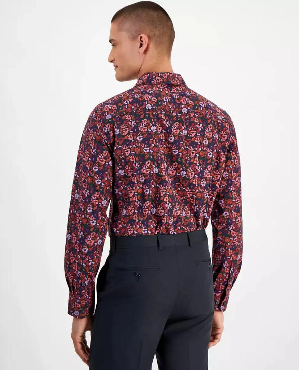 как выглядит Bar III Mens Slim fit Dress Shirt Small 14-14.5 Long Sleeve Multicolor Floral фото