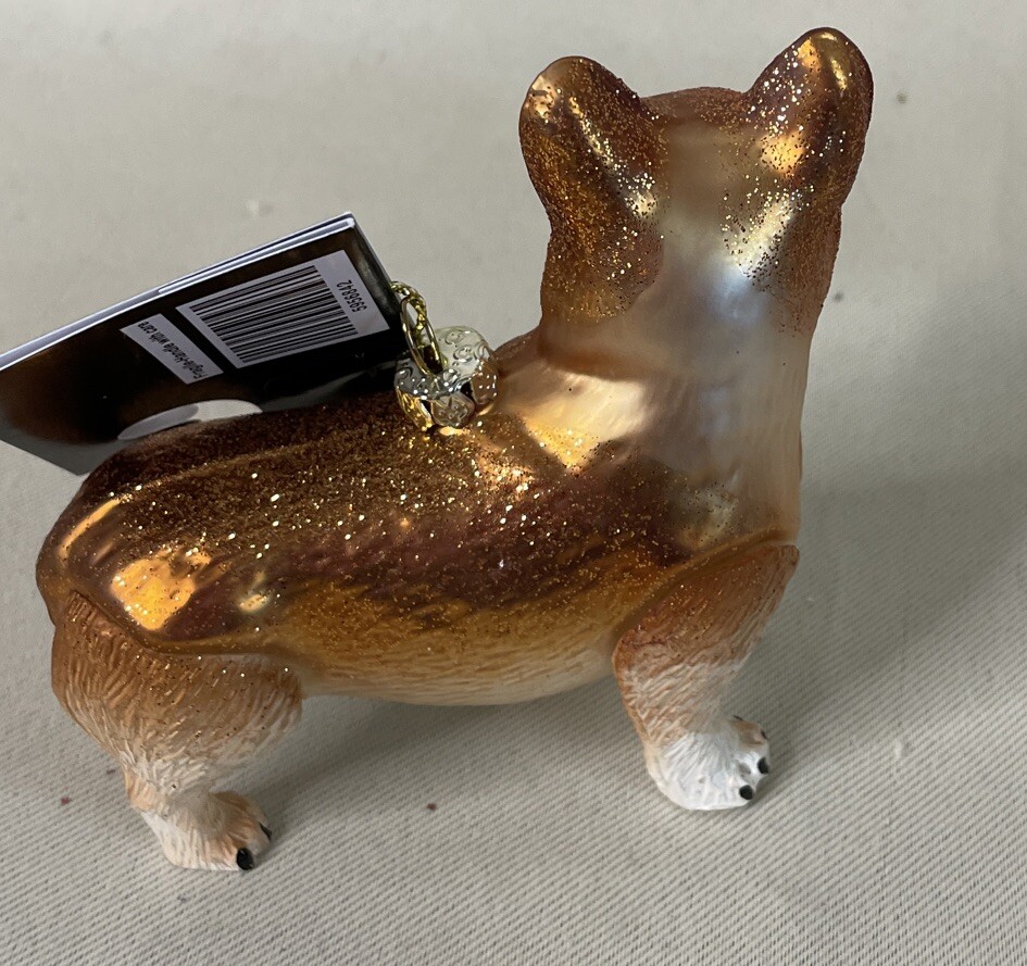 Robert Stanley Corgi Christmas Holiday Ornament Puppy Dog Glass NEW Glittery