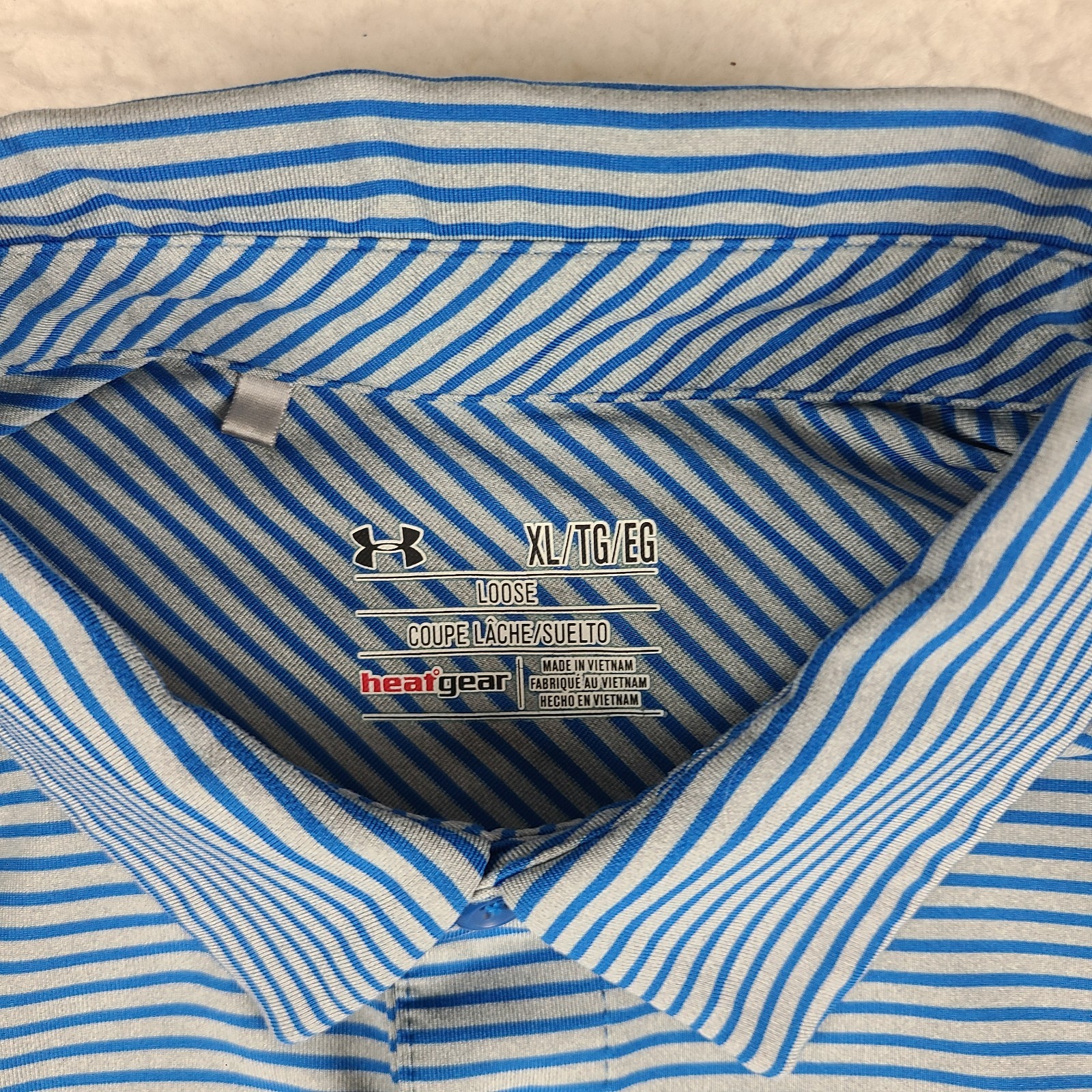 Under Armour Polo Shirt Mens XL Blue Striped Loose Heatgear Performance