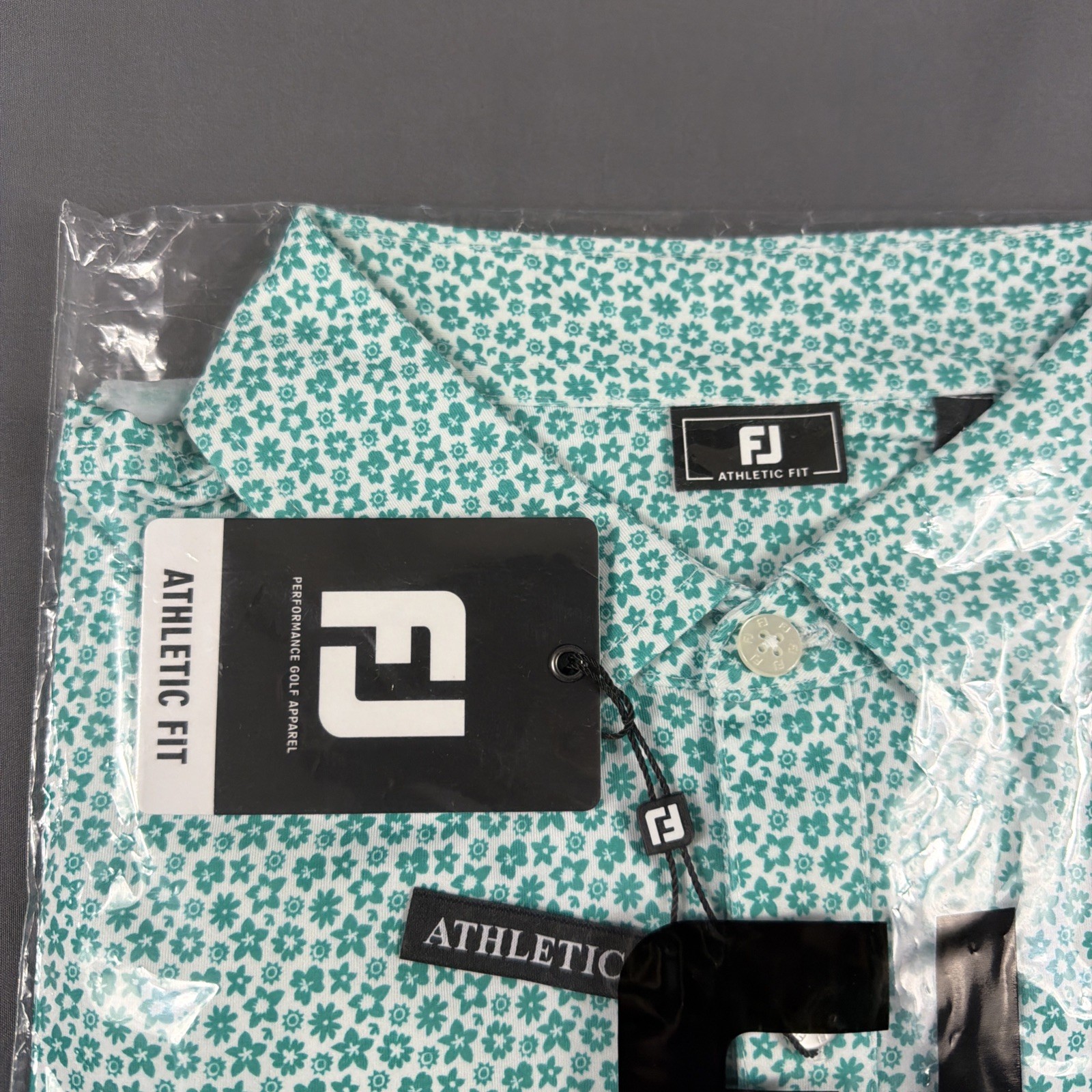 как выглядит FootJoy Golf Shirt Polo Allover Floral Print Athletic Fit Large Emerald MSRP 95 фото