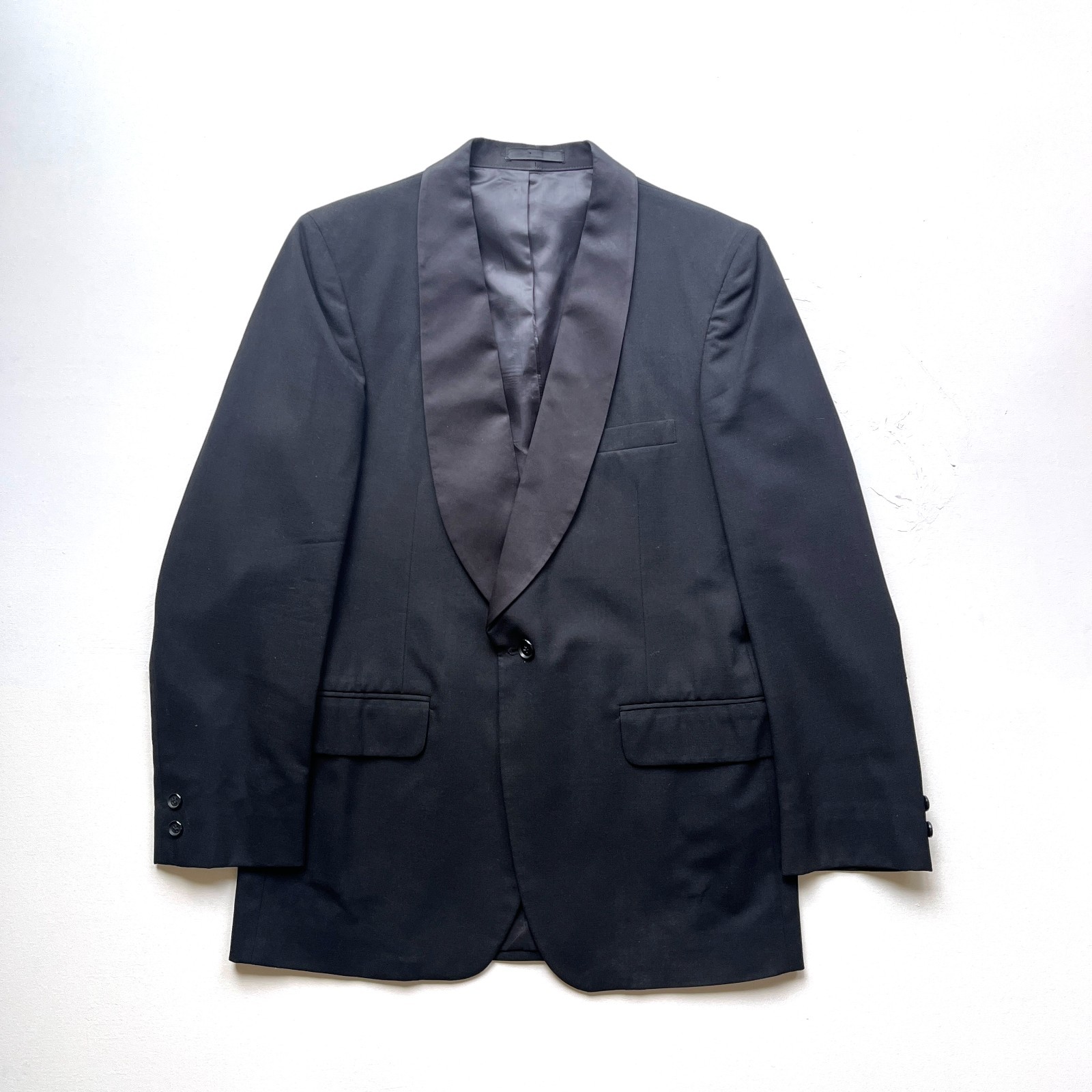 как выглядит Vintage 80s Celebrity Formals Black Shawl Collar Tuxedo Jacket Size 40R фото