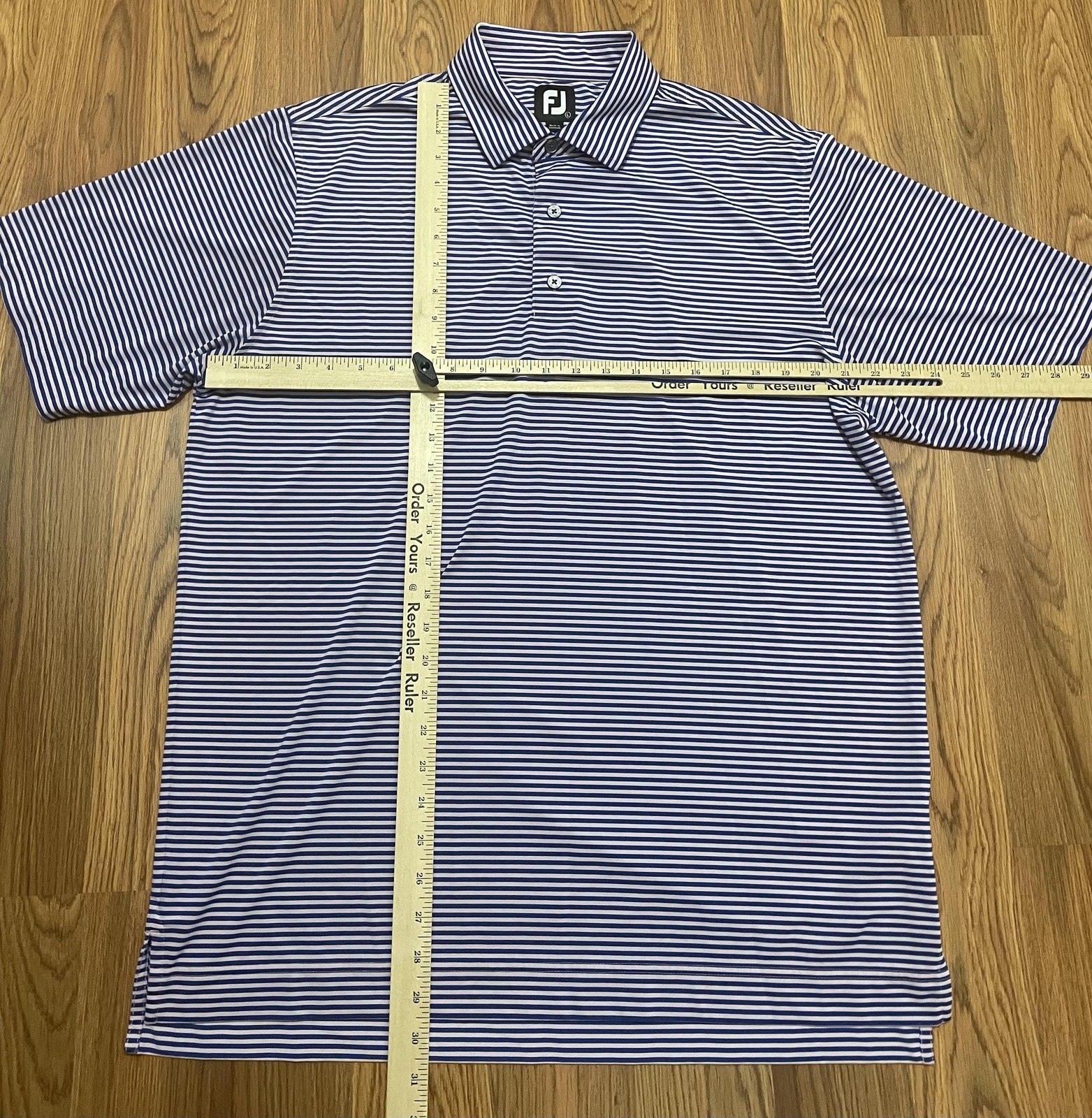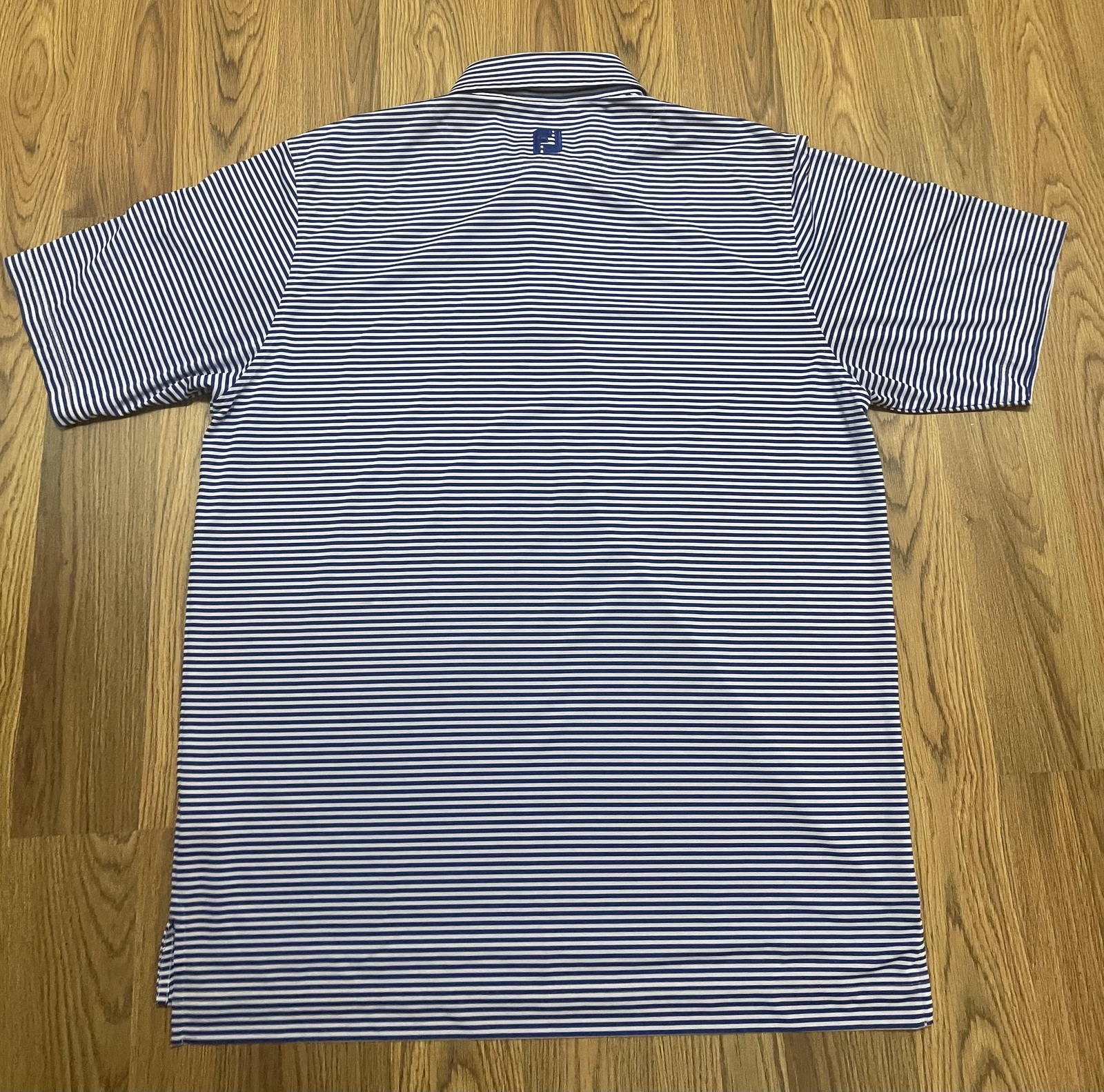 как выглядит FootJoy Polo Shirt Mens Large Golf Performance Striped Stretch Blue фото