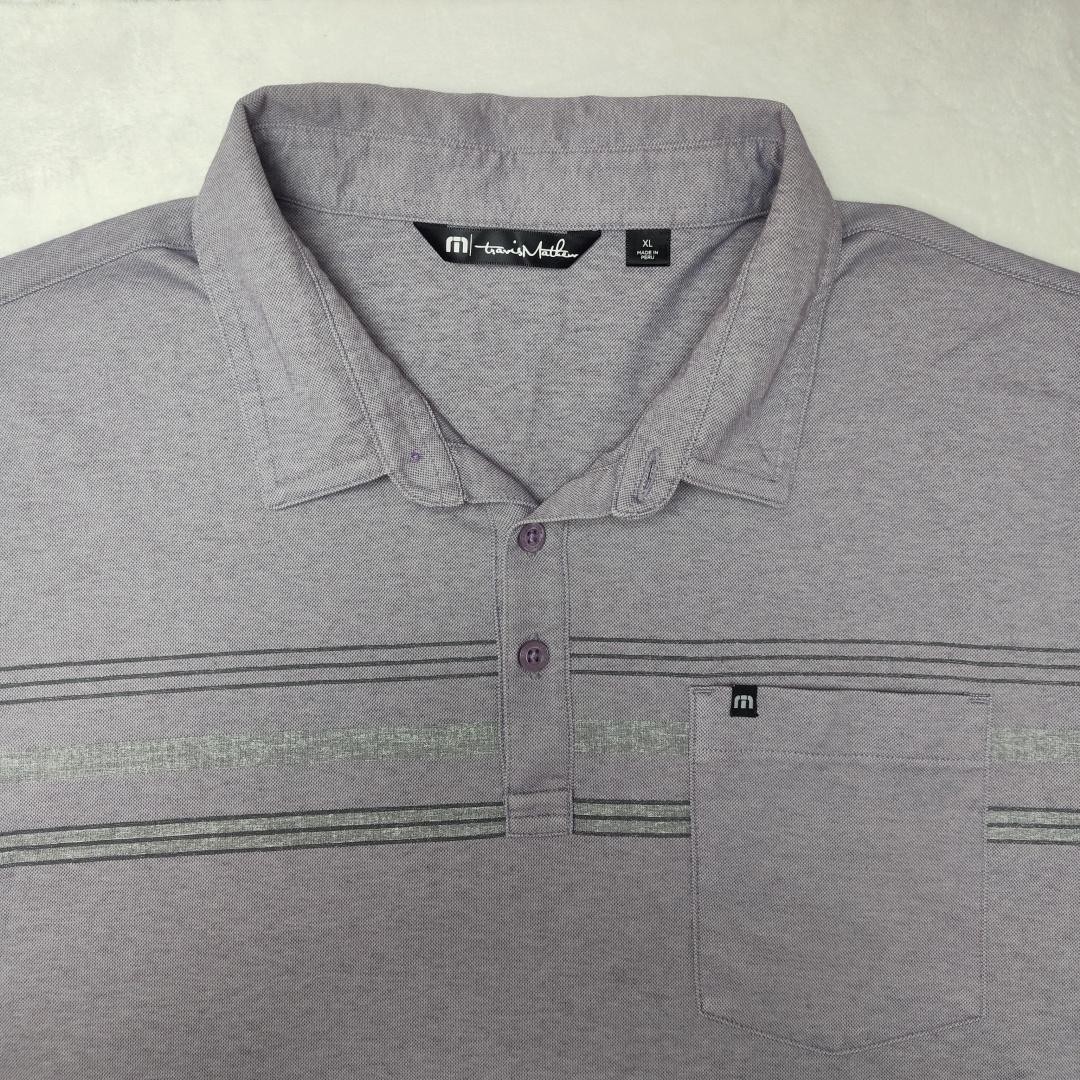 как выглядит Travis Mathew Polo Shirt Mens XL Purple Heather Stripe Pocket Golf Casual Work фото