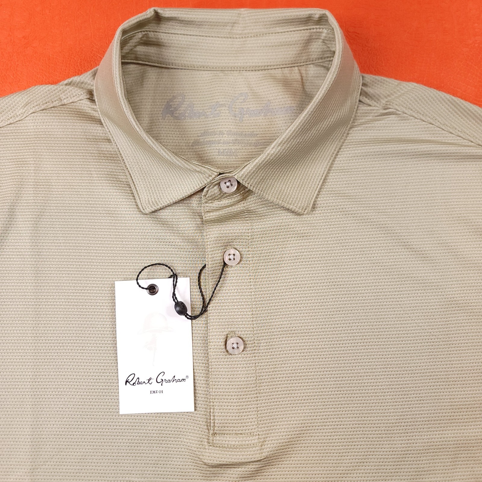 NWT Robert Graham Men's Med CANTO Performance Short Sleeve Golf Polo Shirt Beige