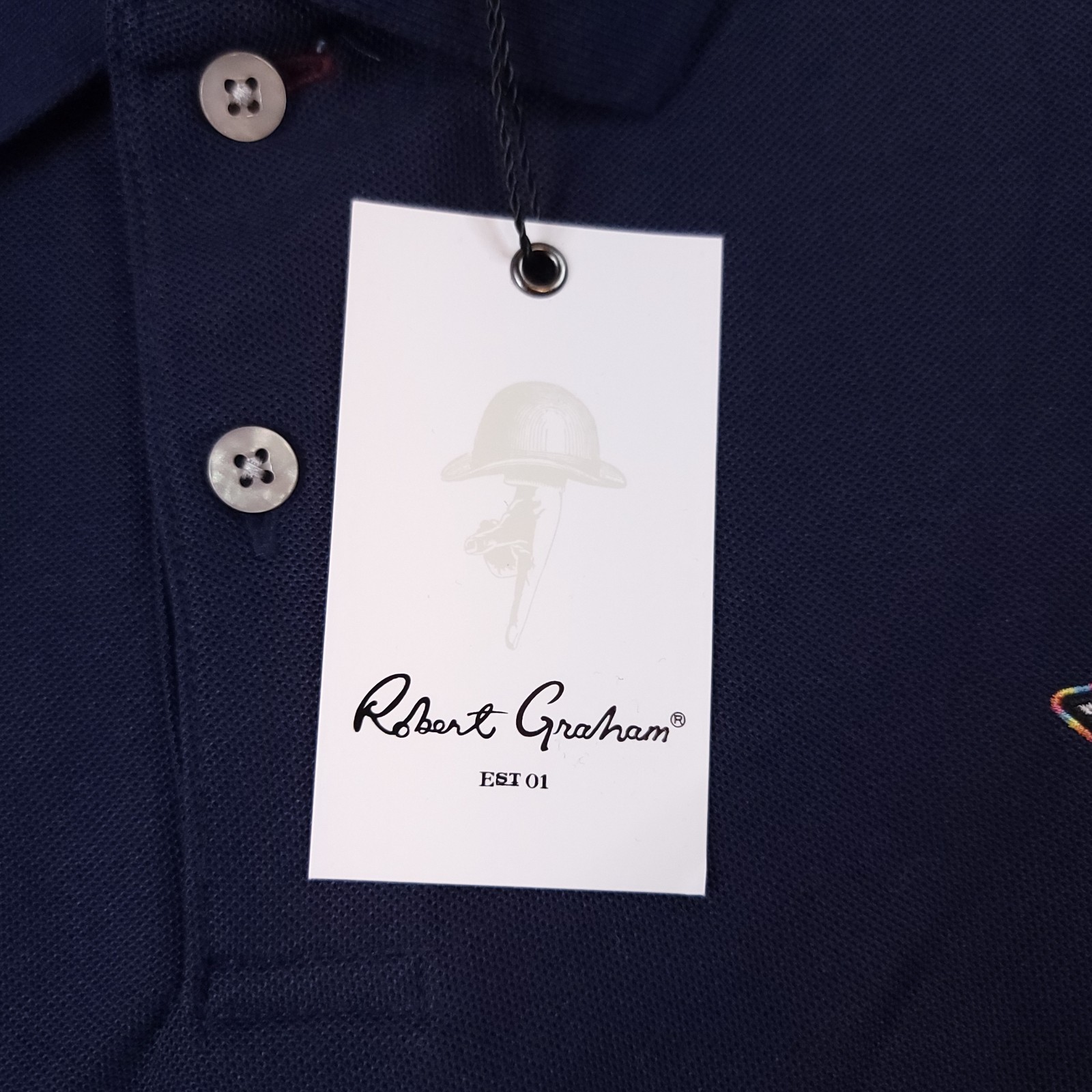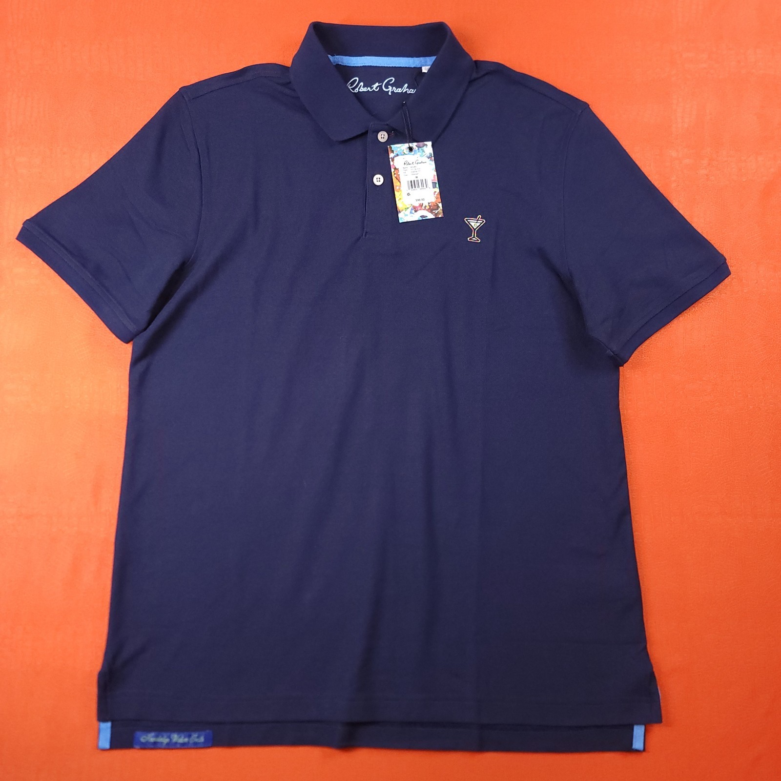 как выглядит NWT Robert Graham BELVAR Mens Medium MARTINI 2-Button Golf Polo Shirt Navy фото