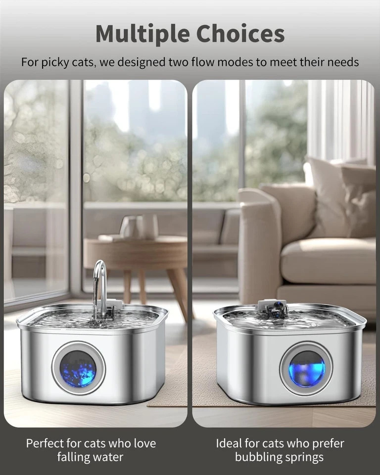 Stainless Steel Cat Water Fountain 3.2L Pet Drinking Fountain Dispenser for Cats