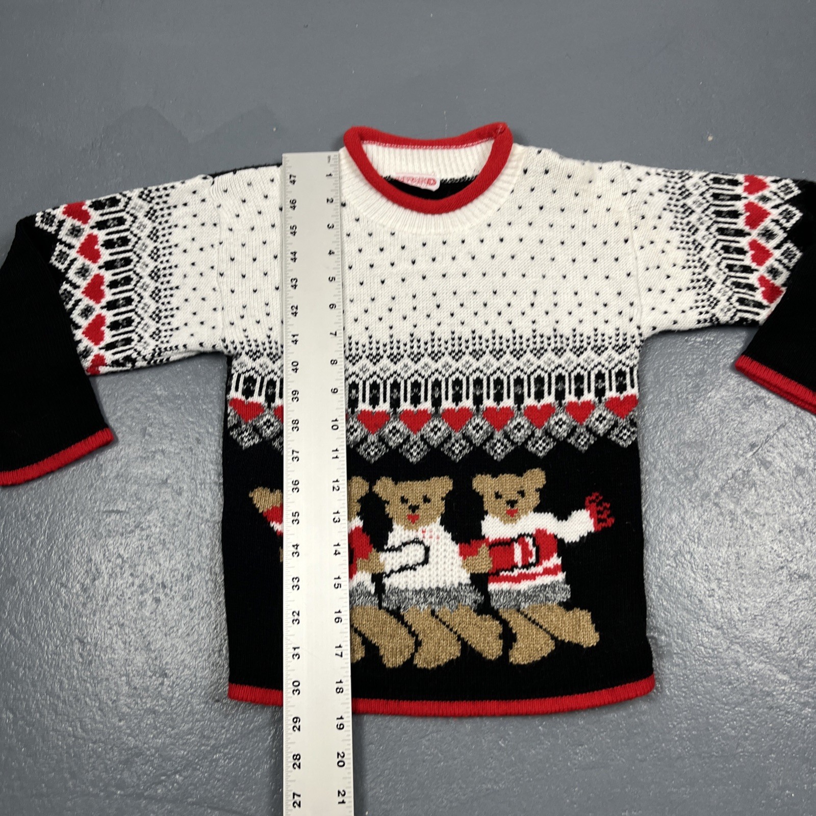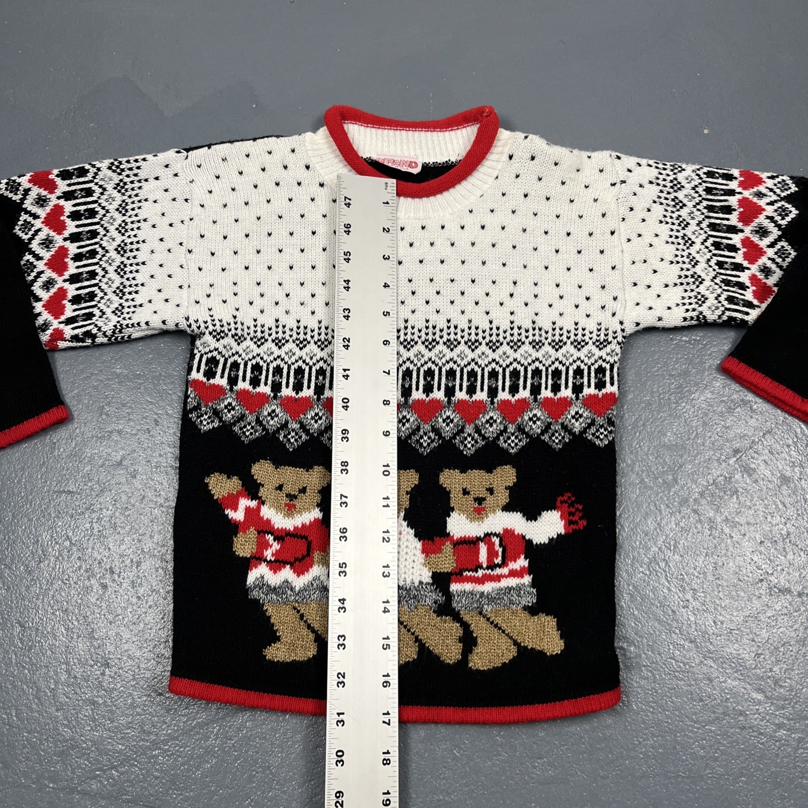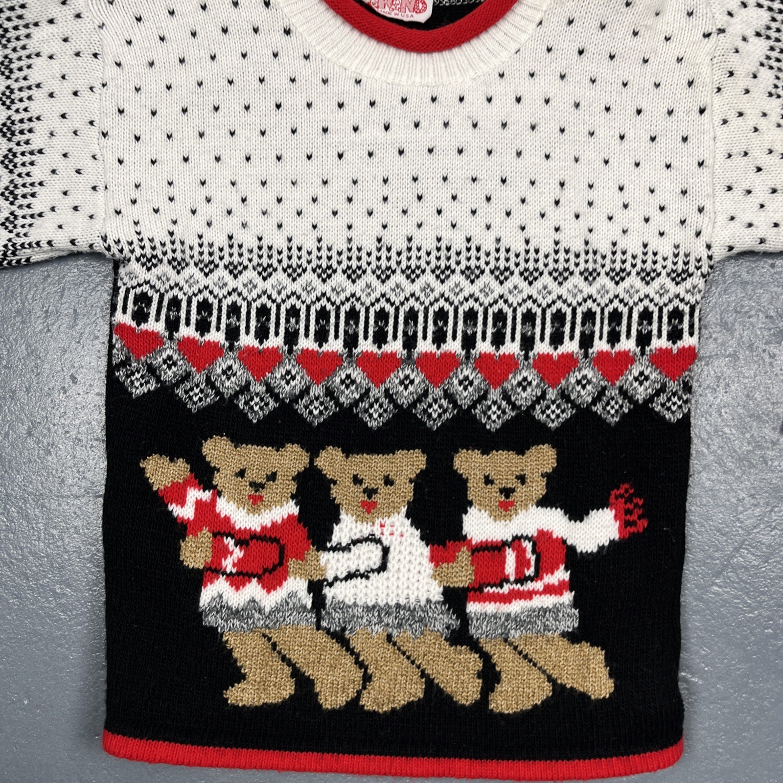 Vintage Kids Knit Teddy Bear Sweatshirt Colorful Christmas Love VTG Sz In Photos