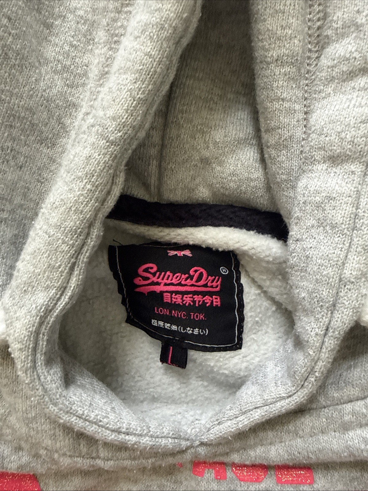как выглядит Superdry Vintage Girls/Women s Hoodie Size Large Color Gray/pink фото