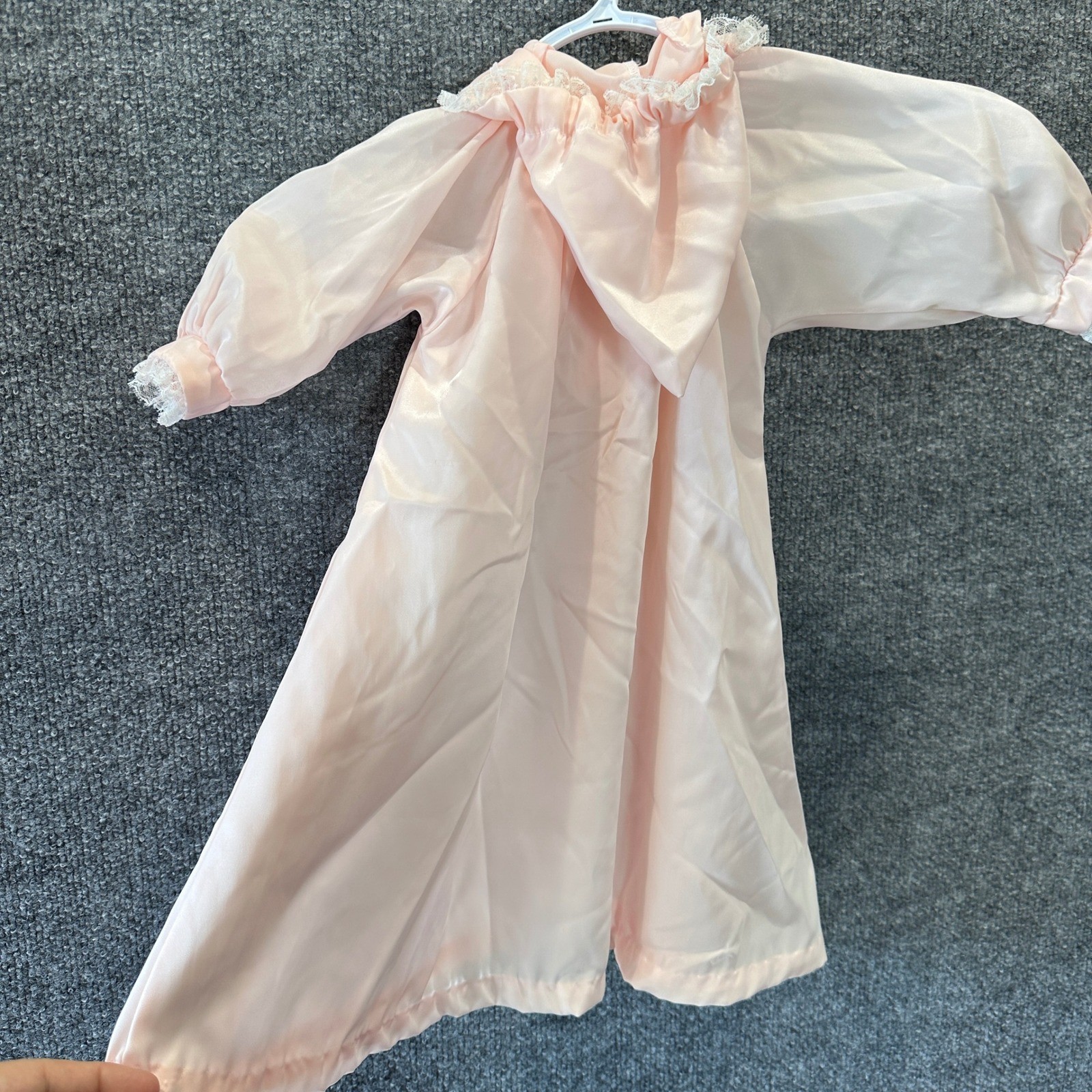 как выглядит Vintage Pink Nylon Baby Gown Hooded Lace Trim Floral Embroidery Layette Heirloom фото