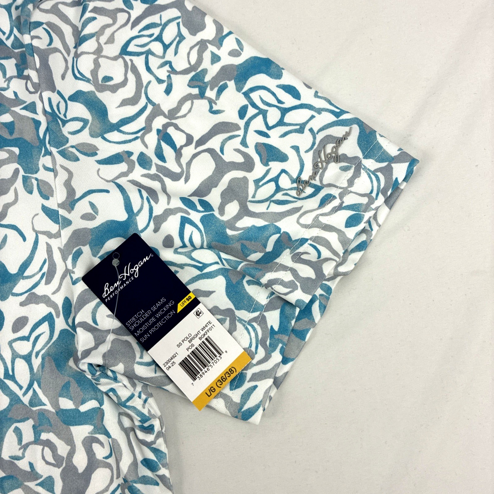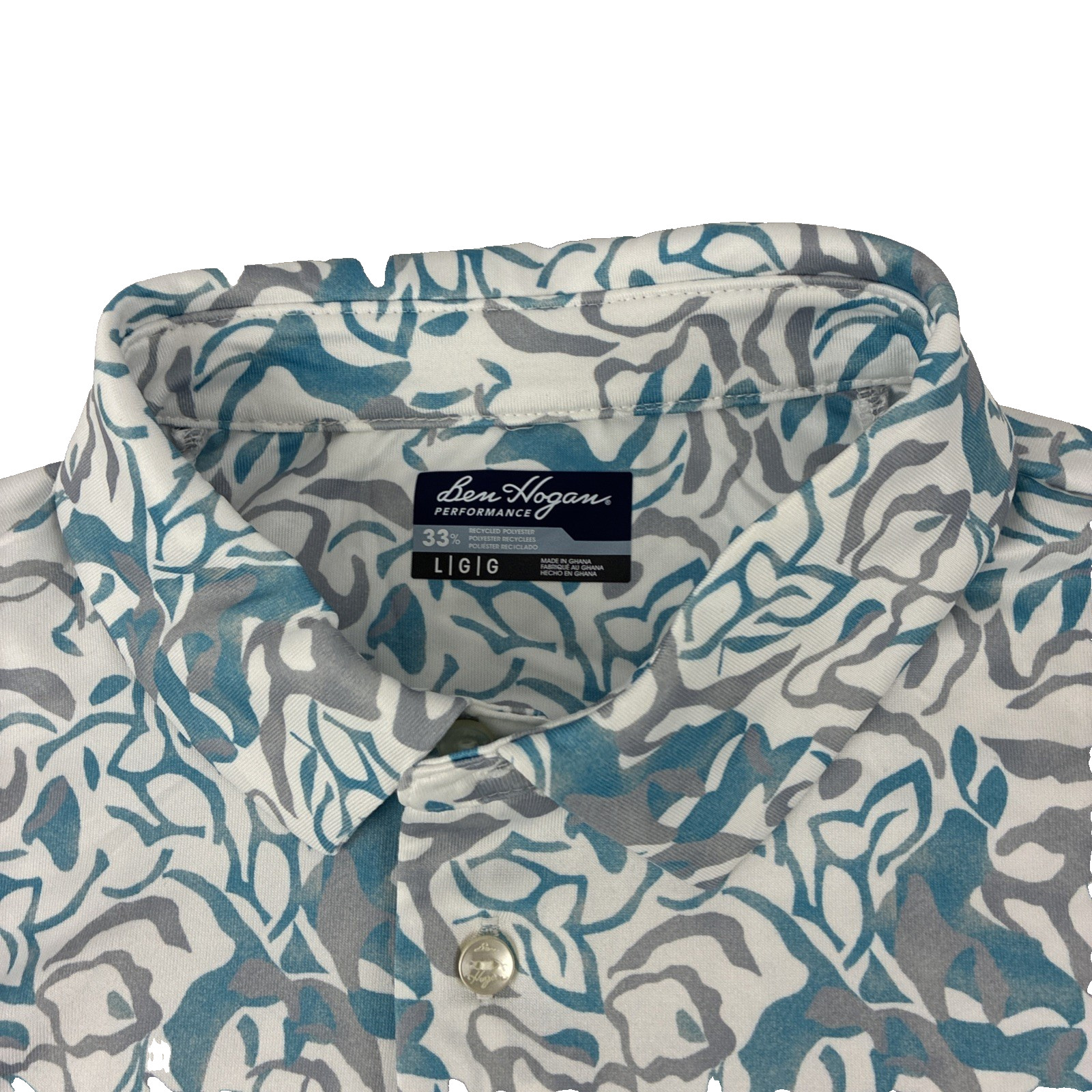 как выглядит New Mens Ben Hogan Performance Golf SS Polo Shirt Size Large NWT Geometric White фото