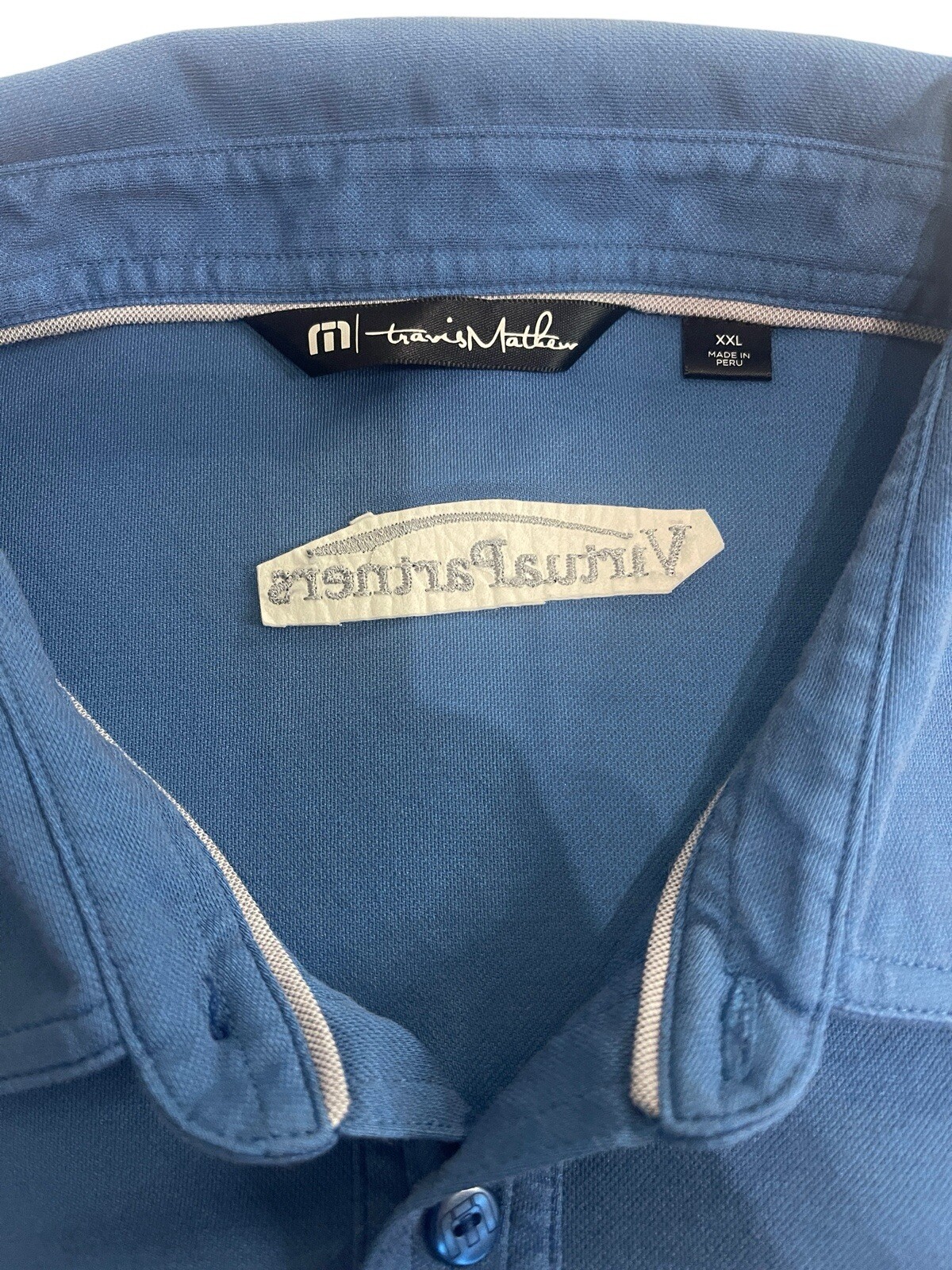 Travis Mathew Polo Shirt Men s Size 2XL Blue VirtuaPartners Logo Golf