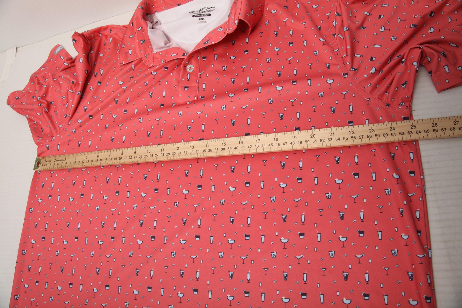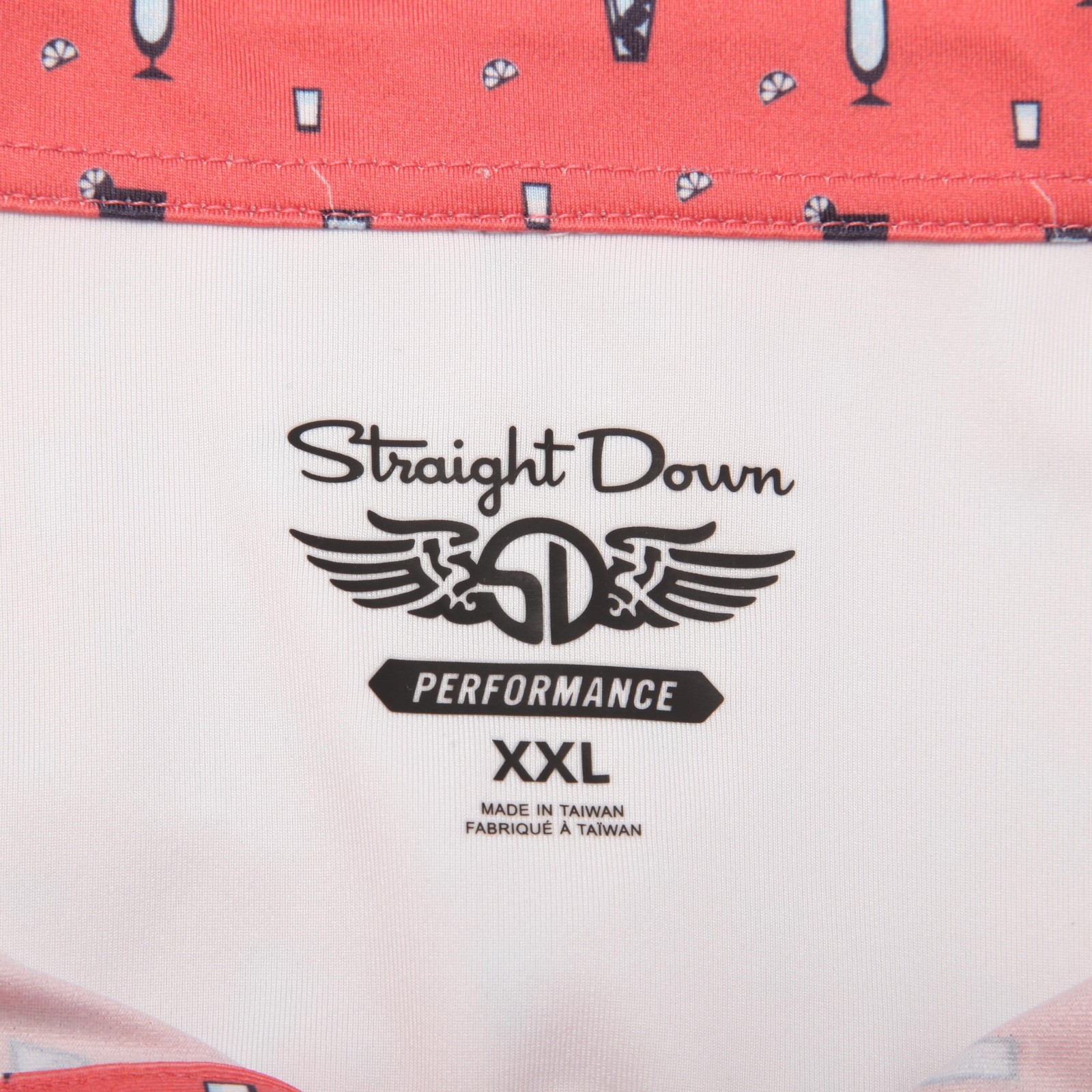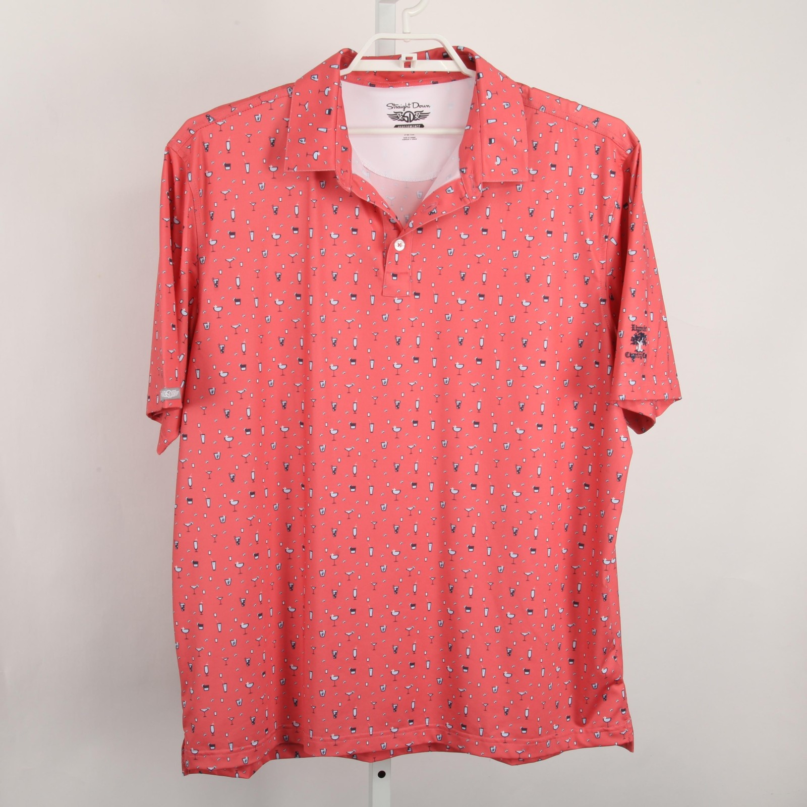 Straight Down Polo Shirt Mens 2XL Pink Cocktail Print Golf Performance Stretch