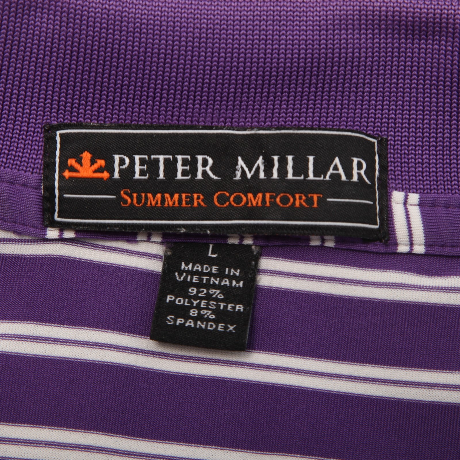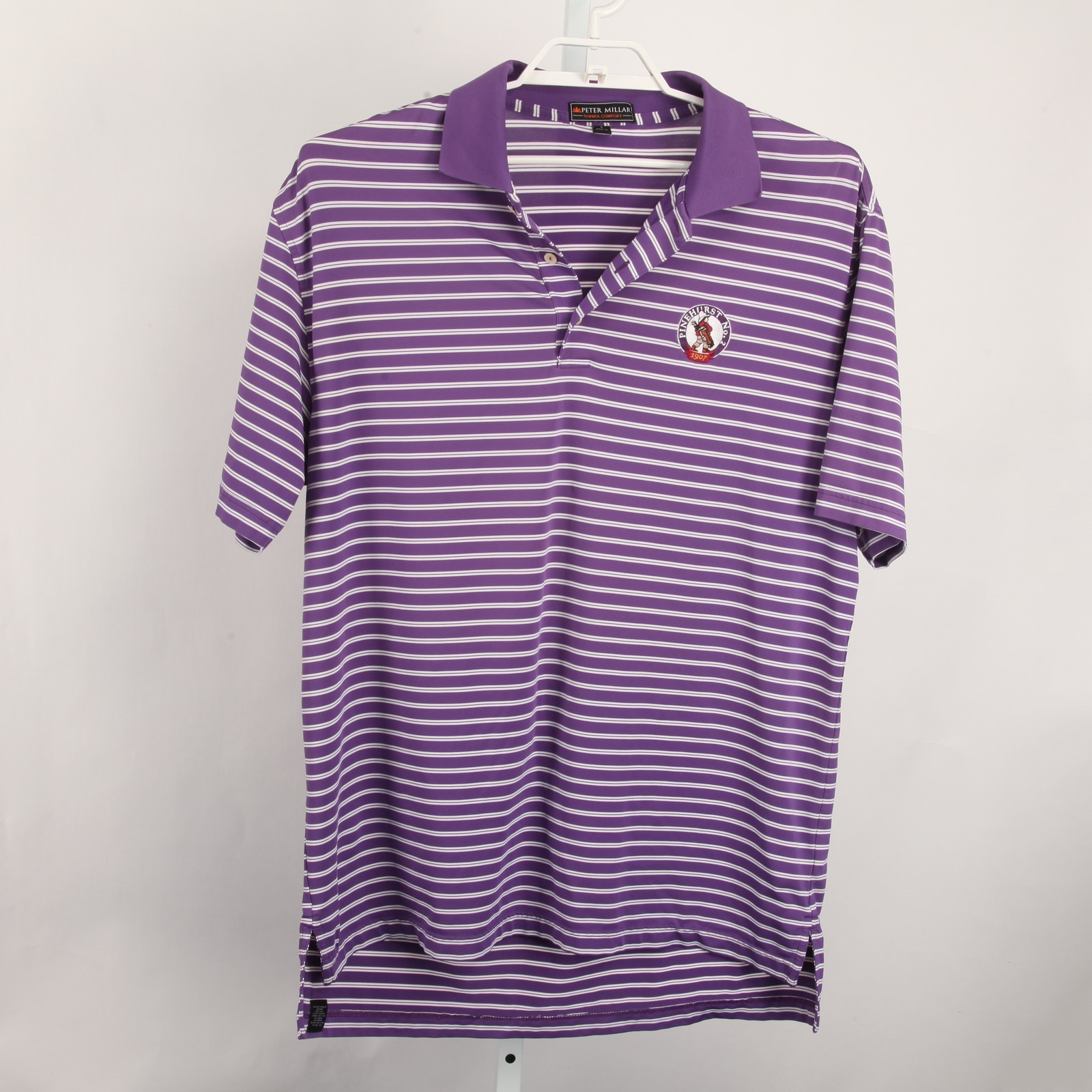Peter Millar Summer Comfort Polo Shirt Mens L Purple White Stripe Pinehurst No 2