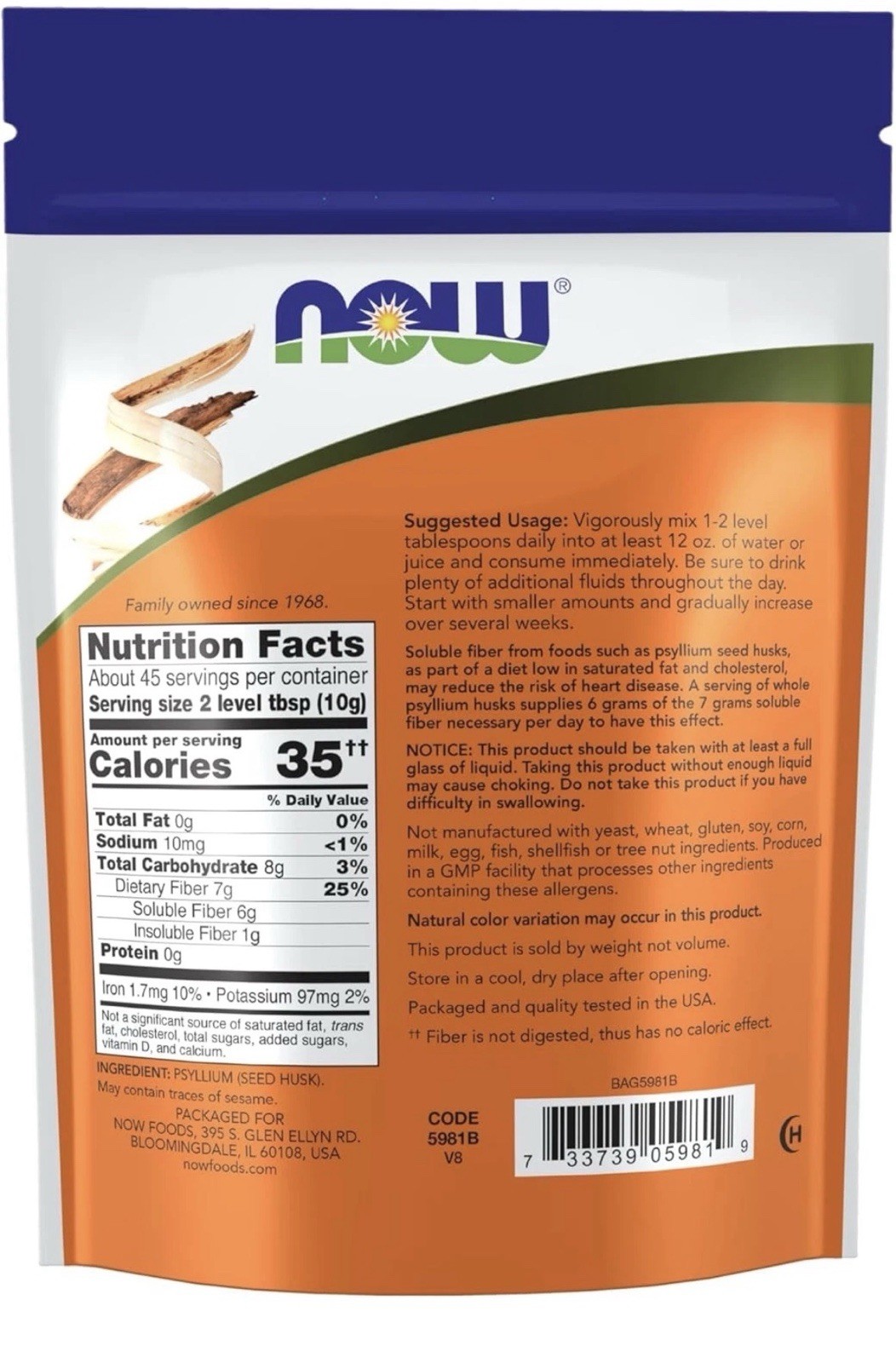 Active Ingredients: Psyllium Husk