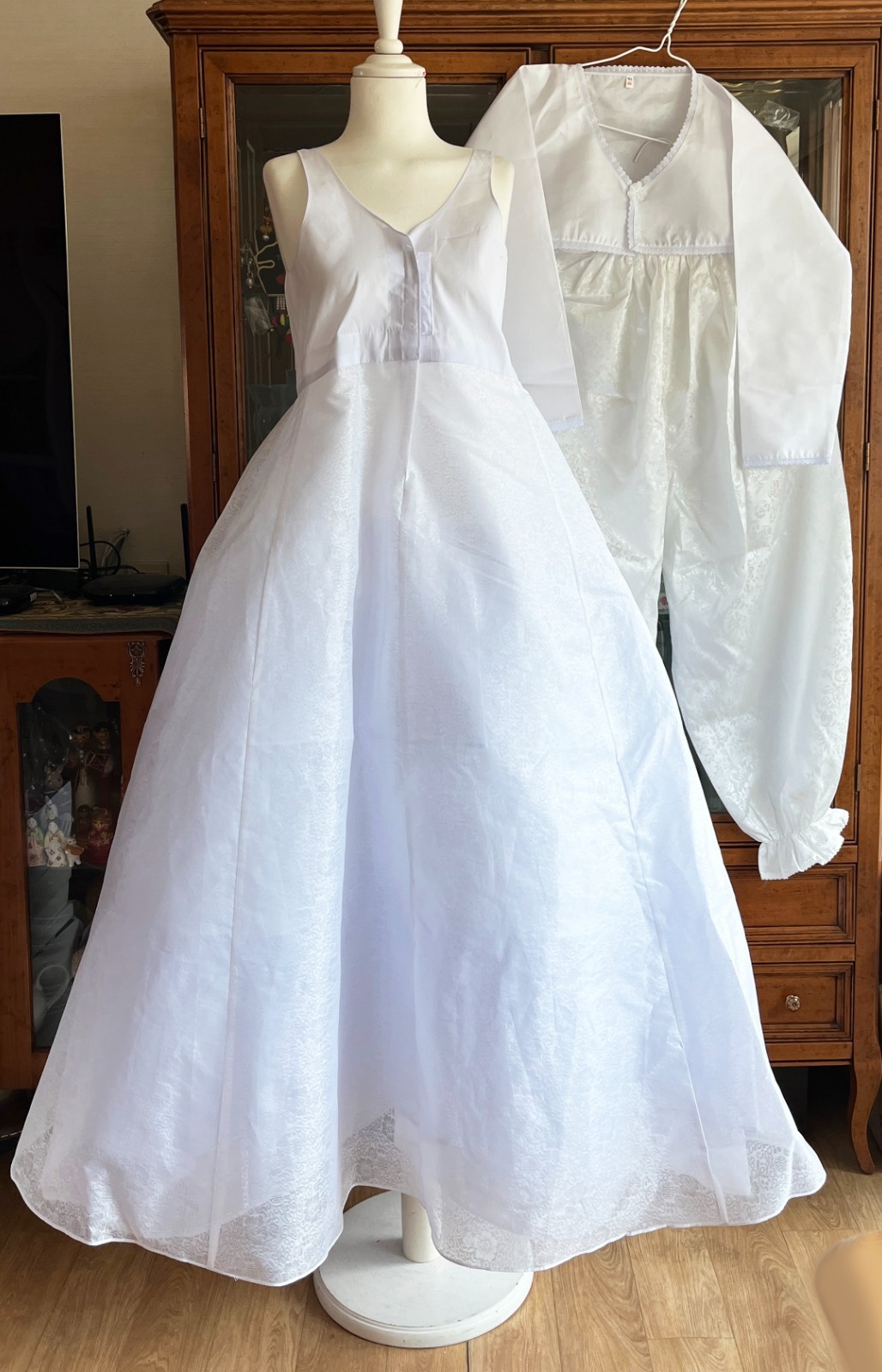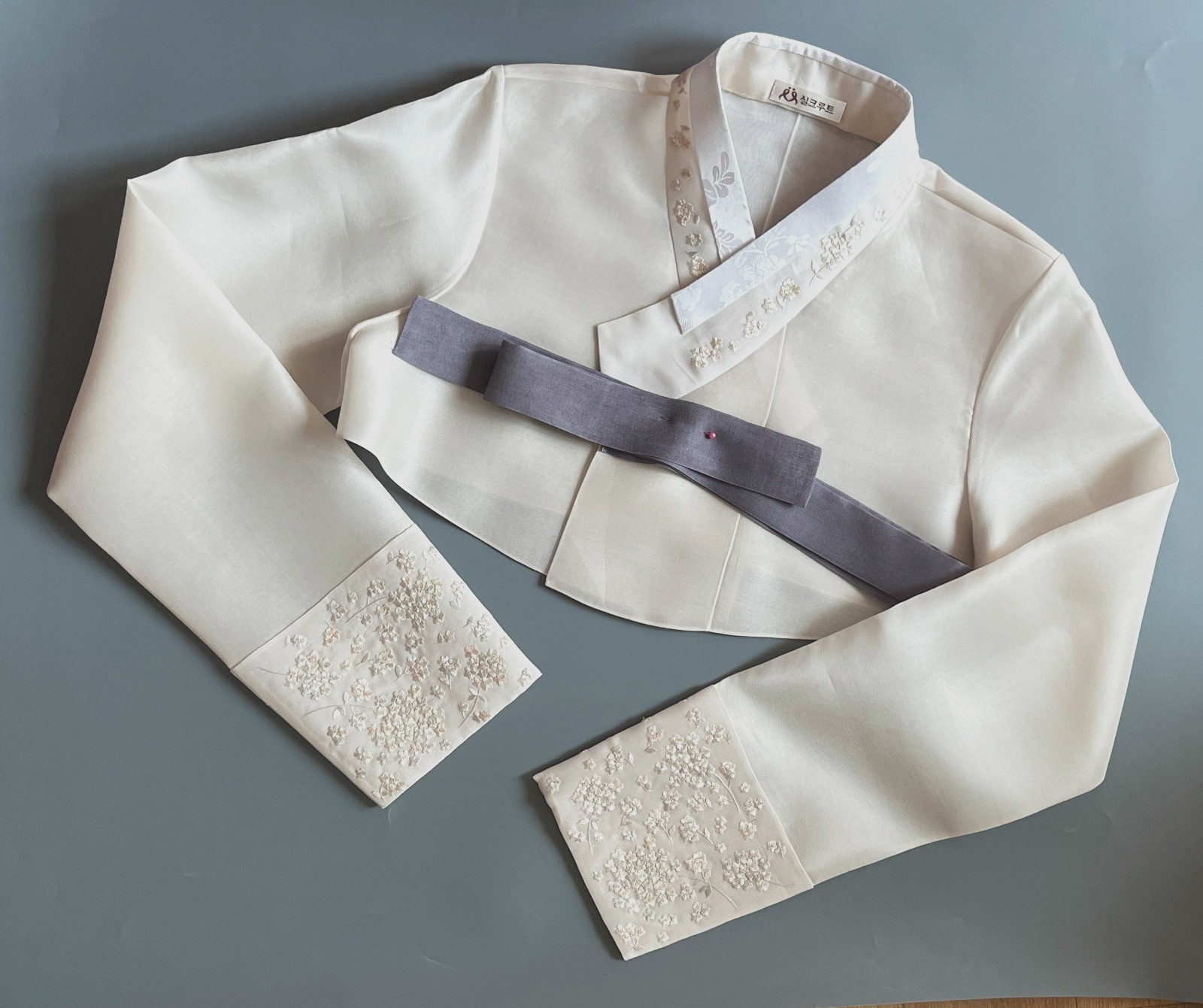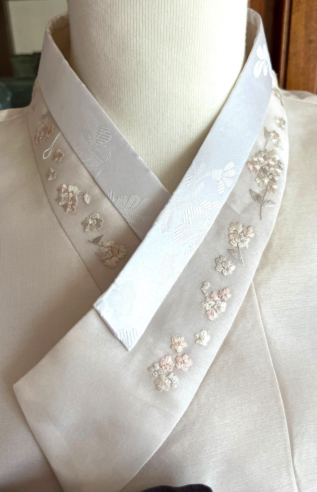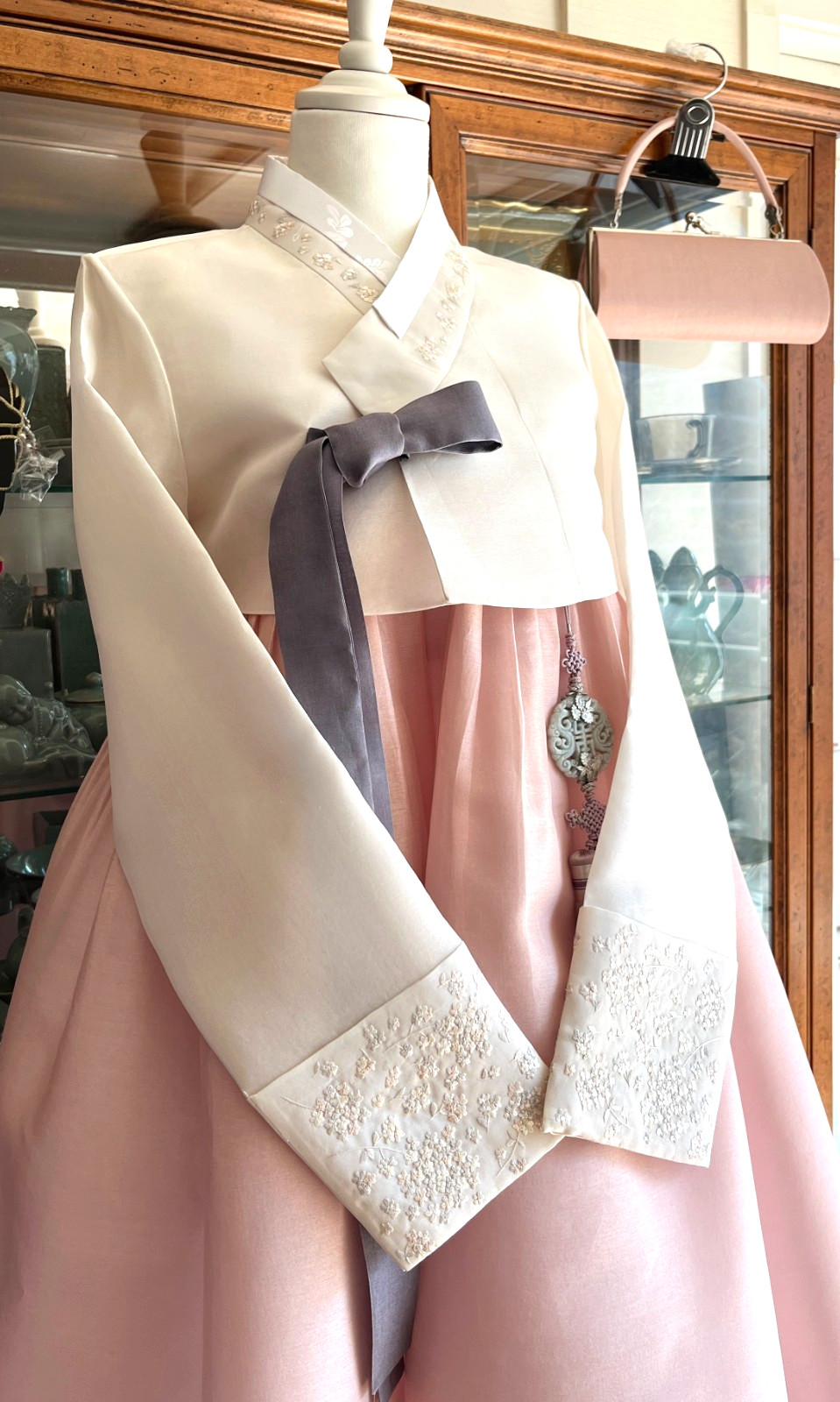 Korean Traditional Silk Hanbok 7p Full Set Ivory Light Pink/Undergarments Bag
