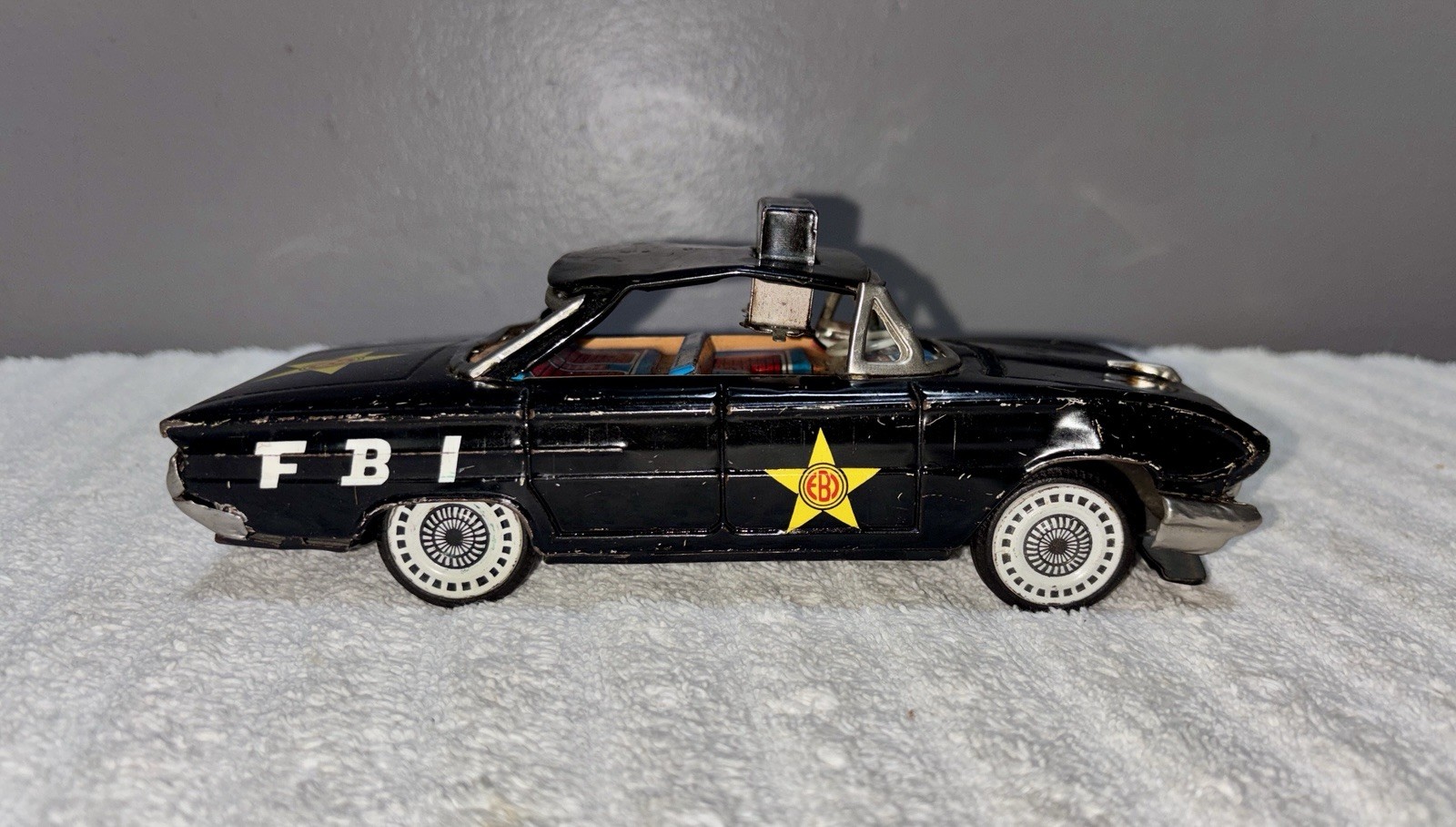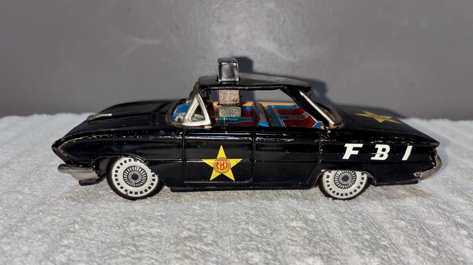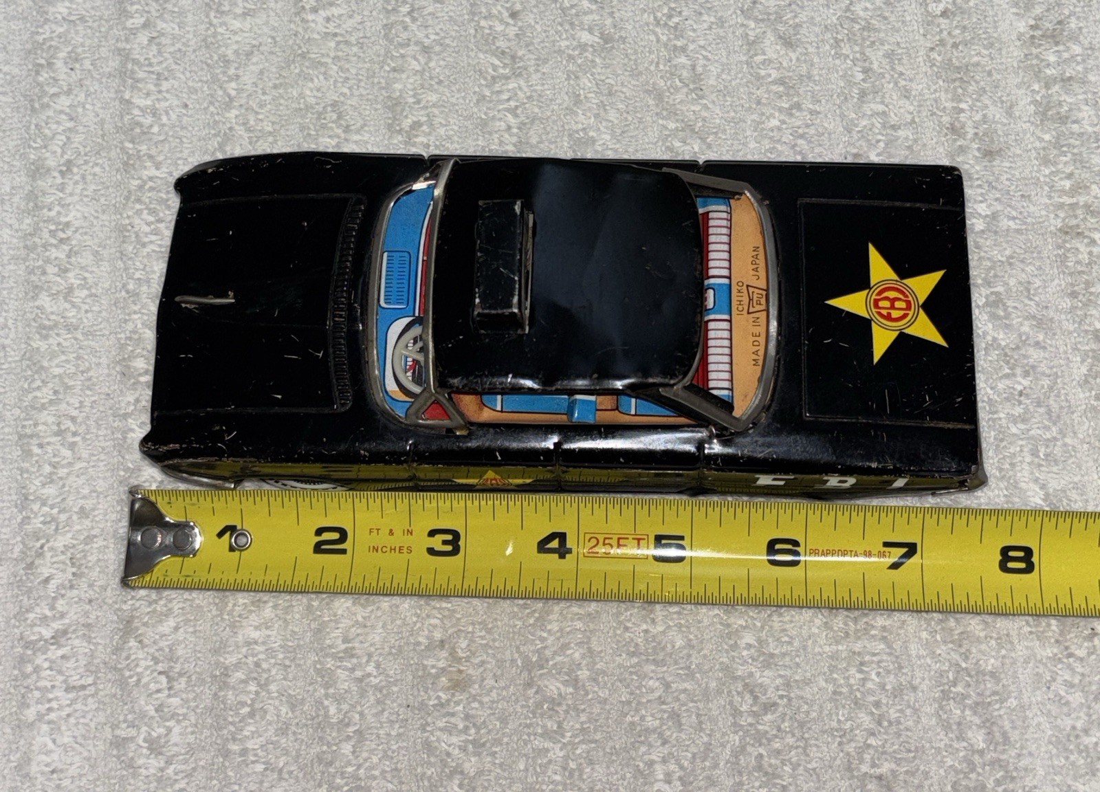 Vintage Ichiko FBI Car-Federal Bureau of Investigation-Buick-Police-Friction-Tin